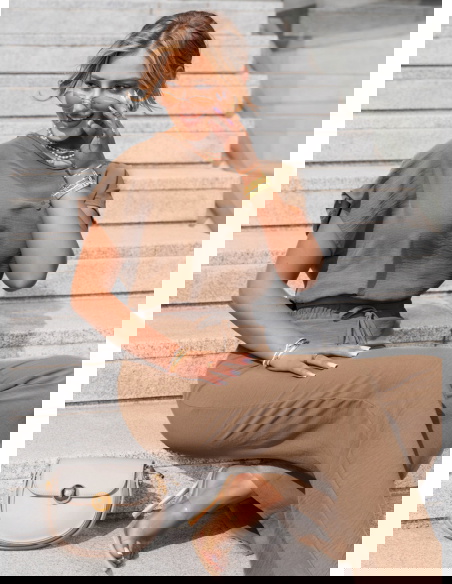 Komplet bluzka i szerokie spodnie Tangalee - mocha mousse sprawdzi się zarówno w codziennych sytuacjach, jak i podczas bardziej stylowych spotkań. Idealny na spacery, lunch w mieście, a także do pracy w komfortowym, ale eleganckim wydaniu.