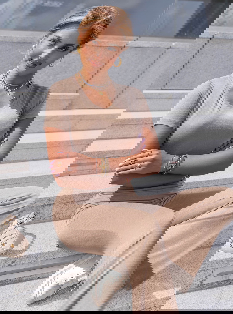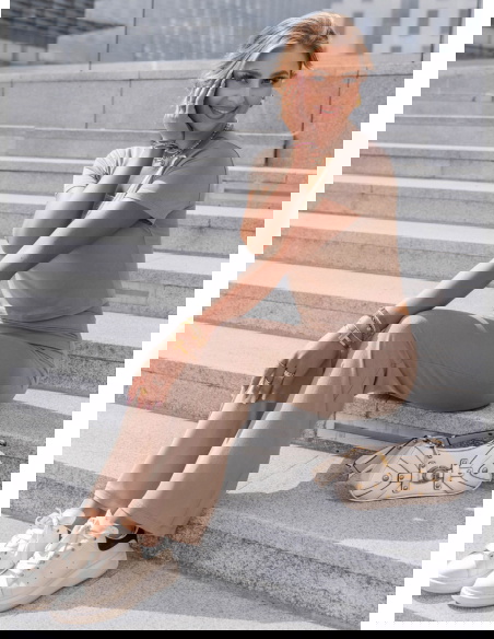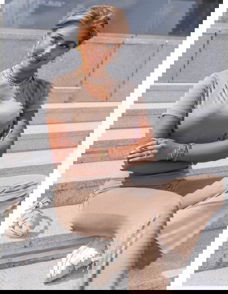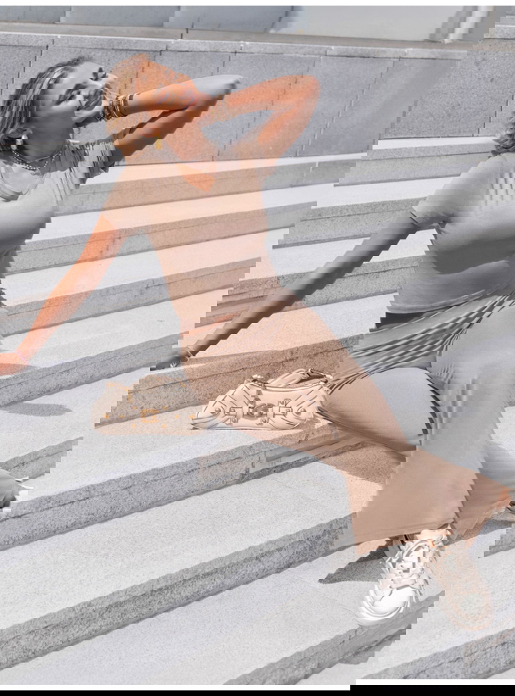 Komplet bluzka z krótkim rękawem i spodnie Devernn - mocha mousse to idealna propozycja dla kobiet, które cenią wygodę, ale nie chcą rezygnować ze stylu. Ciepły odcień mocha mousse nadaje całości eleganckiego, a jednocześnie nowoczesnego charakteru. Bluzka z krótkim rękawem ma dopasowany fason i delikatny dekolt, który subtelnie podkreśla szyję i ramiona. Spodnie z szerokimi nogawkami pięknie układają się na sylwetce i optycznie ją wydłużają. Wysoki stan zapewnia komfort i stabilność, a całość prezentuje się lekko i kobieco. To komplet, który zakładasz raz – i nie chcesz zdejmować. Jego minimalizm sprawia, że świetnie wpisuje się w aktualne trendy i pozwala na wiele modowych interpretacji. Można go nosić razem lub osobno, miksując z innymi elementami garderoby. Dzięki neutralnej kolorystyce staje się bazą, do której wystarczy dodać kilka dodatków, by stworzyć pełną stylizację. To look, który sprawdzi się zarówno w domowym chilloucie, jak i podczas miejskich aktywności.