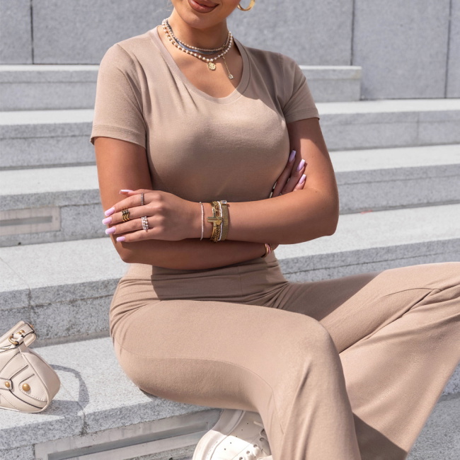 Komplet bluzka z krótkim rękawem i spodnie Devernn - mocha mousse