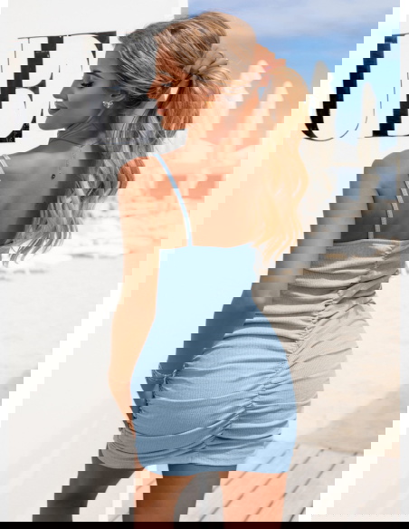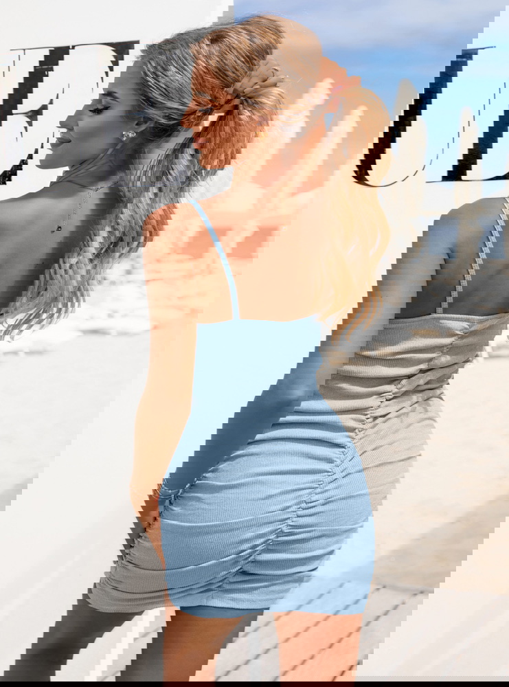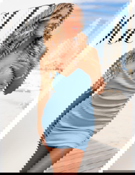 Błękitna prążkowana sukienka na ramiączkach Lynetta to must-have na ciepłe dni. Jej uniwersalność sprawia, że z łatwością stworzysz z nią wiele stylizacji.