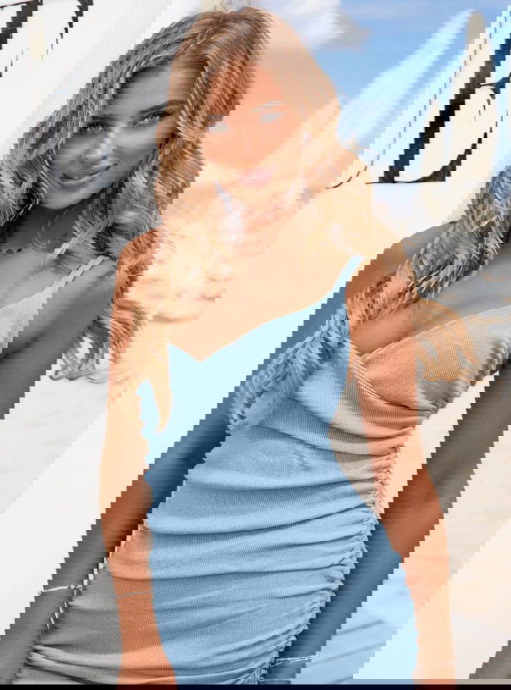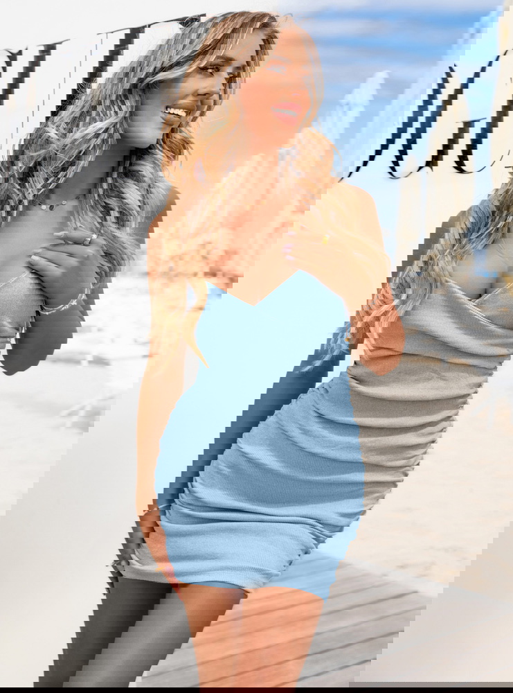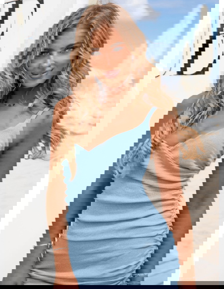 Błękitna prążkowana sukienka na ramiączkach Lynetta to propozycja, która od razu przyciąga uwagę swoją subtelnością i świeżością. Delikatny odcień błękitu działa odświeżająco i doskonale komponuje się z letnią aurą. Sukienka pięknie podkreśla sylwetkę, jednocześnie zapewniając swobodę ruchu. Jej dopasowany fason z marszczeniem z tyłu dodaje kobiecego uroku i lekko modeluje figurę. Ramiączka nadają stylizacji lekkości i subtelności, a przekładany dekolt optycznie wydłuża szyję. To idealna baza do stworzenia zarówno romantycznego, jak i bardziej casualowego looku. Stylowa, ale nieprzesadzona – w tej sukience możesz poczuć się kobieco i komfortowo jednocześnie. Świetnie współgra z delikatnymi dodatkami, jak też wyrazistymi akcentami. To model, który z łatwością wpisze się w wiele letnich stylizacji. Błękitna sukienka to wybór dla kobiet, które lubią wyglądać stylowo bez wysiłku.