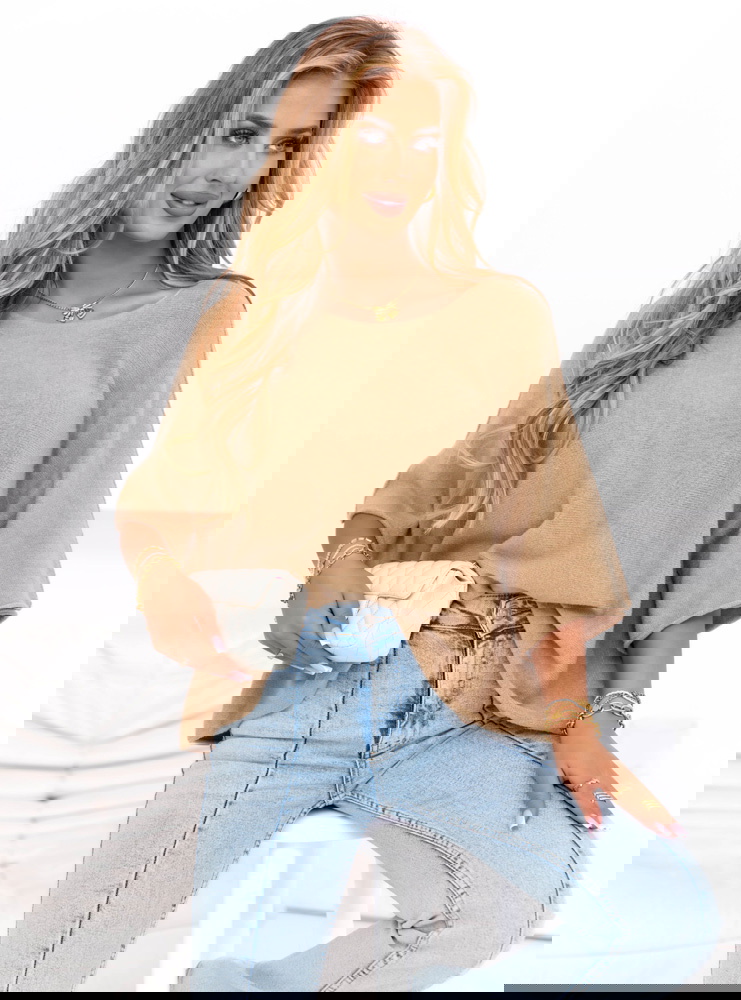 Sweter oversize Pauleen - mocha mousse to synonim komfortu i niewymuszonej elegancji. Jego luźny krój otula sylwetkę, zapewniając swobodę ruchu i wyjątkowy komfort noszenia. To idealna propozycja dla kobiet, które cenią sobie styl, ale nie chcą rezygnować z wygody. Miękki materiał i neutralna kolorystyka sprawiają, że sweter pasuje do niemal każdej stylizacji. Odcień mocha mousse wpisuje się w aktualne trendy – ciepły, uniwersalny, idealny na sezon przejściowy. Szerokie rękawy i lekko opadająca linia ramion dodają mu nonszalancji i luzu. To doskonała baza do wielu stylizacji – od casualowych, po bardziej eleganckie. Świetnie prezentuje się w towarzystwie jeansów, legginsów, jak i spódnic. Sweter możesz nosić luźno lub wsunąć przód w spodnie, by podkreślić talię. To klasyka z nutą nowoczesności – niezbędnik w każdej garderobie kapsułowej.