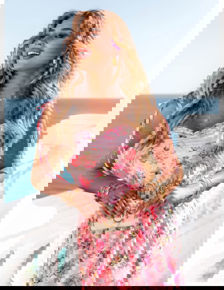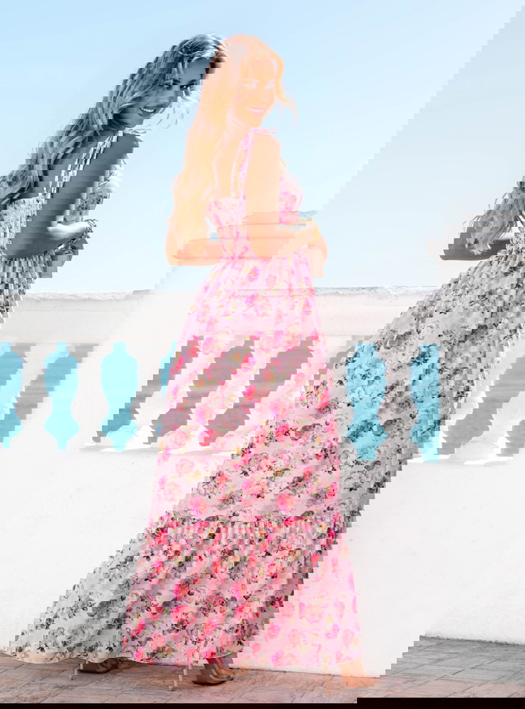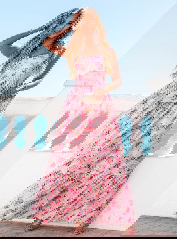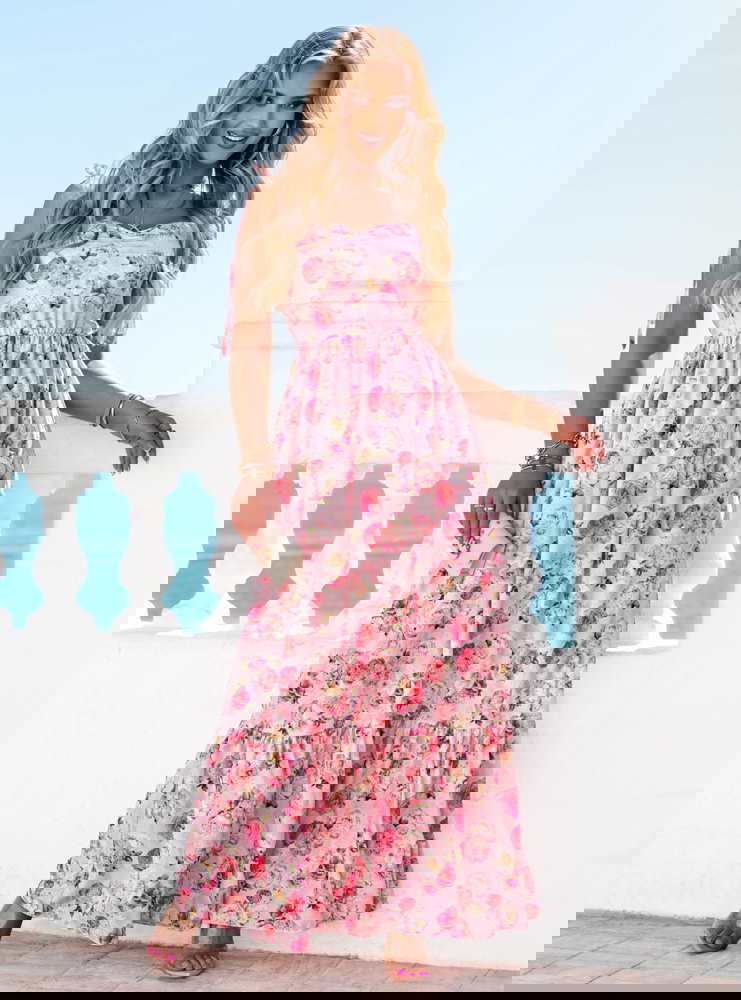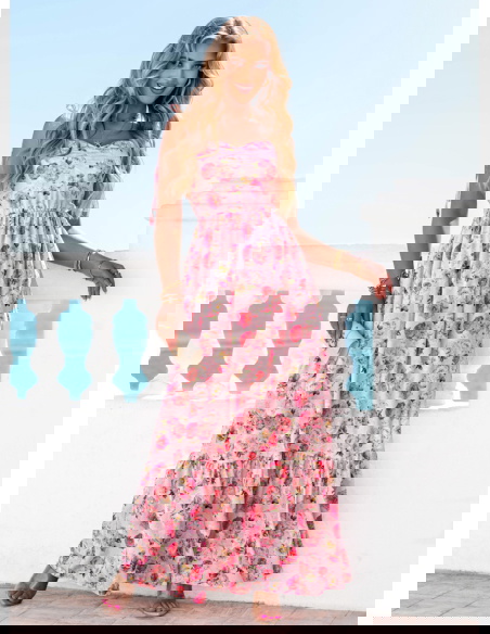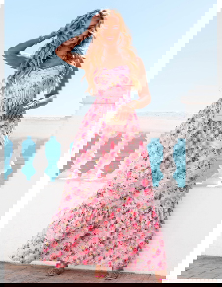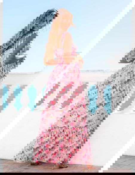 Kwiecista sukienka maxi na ramiączkach Lorainee - wzór 2513 jest idealna na letnie przyjęcia, wakacyjne randki, wyjazdy i śródziemnomorskie spacery. Sprawdzi się również na garden party, kolację pod chmurką lub uroczystości w plenerze.