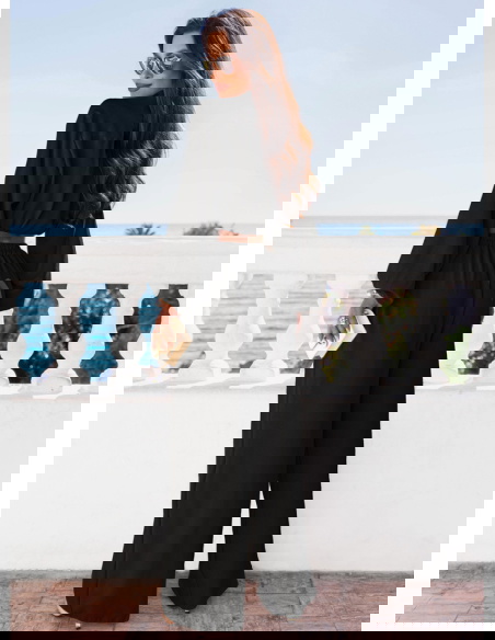 Czarny komplet 3 częściowy Shayraa to definicja nowoczesnej elegancji z nutą nonszalancji. Składający się z trzech osobnych elementów – bandeau topu, szerokich spodni i luźnej koszuli – stanowi idealną bazę do budowania stylizacji na różne okazje. Czerń to klasyka, która nigdy nie wychodzi z mody i zawsze robi wrażenie – niezależnie od tego, czy jesteś na kolacji, wieczornym spacerze czy przyjęciu w ogrodzie. Koszula może być stylowo zawiązana lub narzucona lekko na ramiona, co pozwala dopasować look do nastroju i sytuacji. Elastyczny top trzyma się wygodnie i podkreśla sylwetkę bez nadmiernego odkrywania ciała. Spodnie z wysokim stanem wysmuklają talię i dodają lekkości całej stylizacji. To propozycja, która sprawdzi się również jako strój wieczorowy – wystarczy dodać efektowną biżuterię lub kopertówkę. Czerń daje ogromne możliwości – ten komplet to doskonała baza do eksperymentowania z dodatkami. W kolekcji Costa Del Amor stawiamy na kobiecość, wygodę i charakter – a ten zestaw ma to wszystko. Jest modny, ale nieprzekombinowany, odważny, ale subtelny.