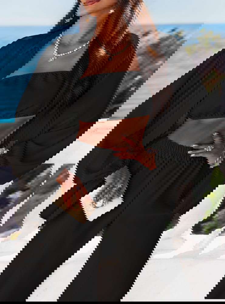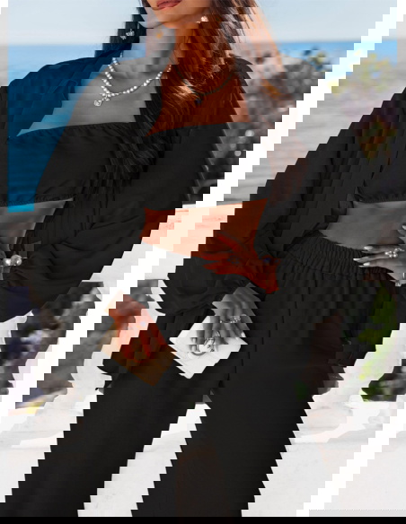Czarny komplet 3 częściowy Shayraa idealnie sprawdzi się na wieczorne wyjście, kolację nad morzem, luźne przyjęcie lub modny event. Zestaw ten świetnie odnajdzie się również w stylizacjach na wyjazd – dzięki komfortowi i możliwości mieszania części.