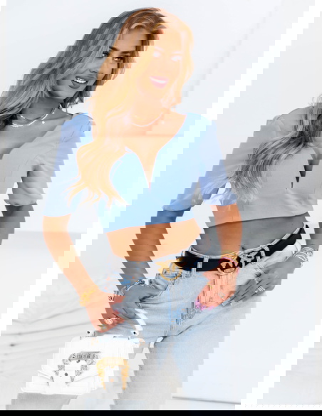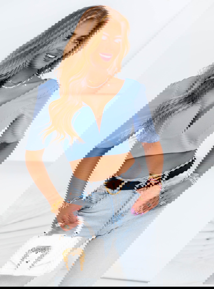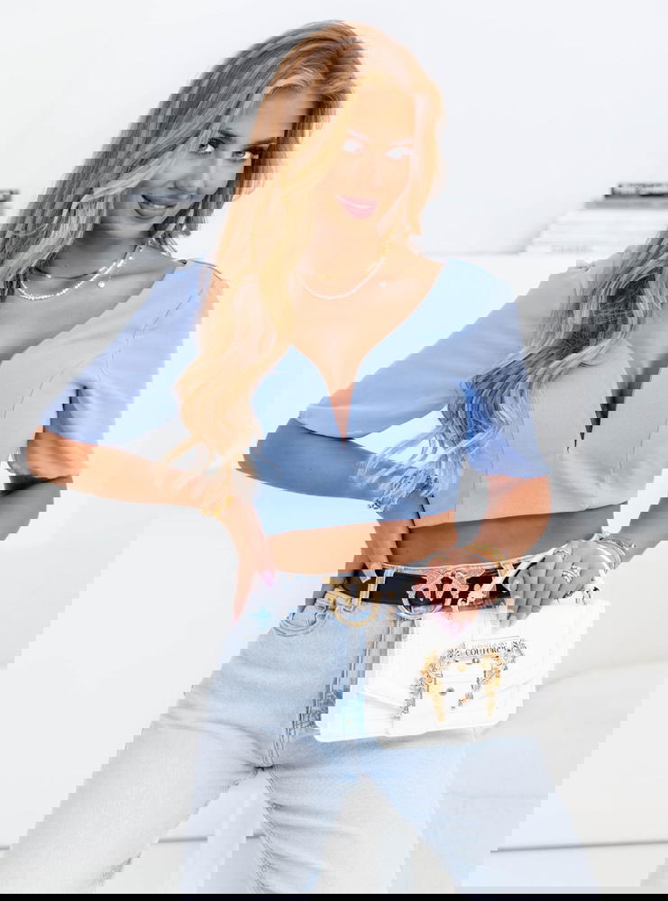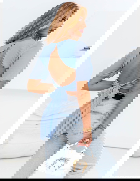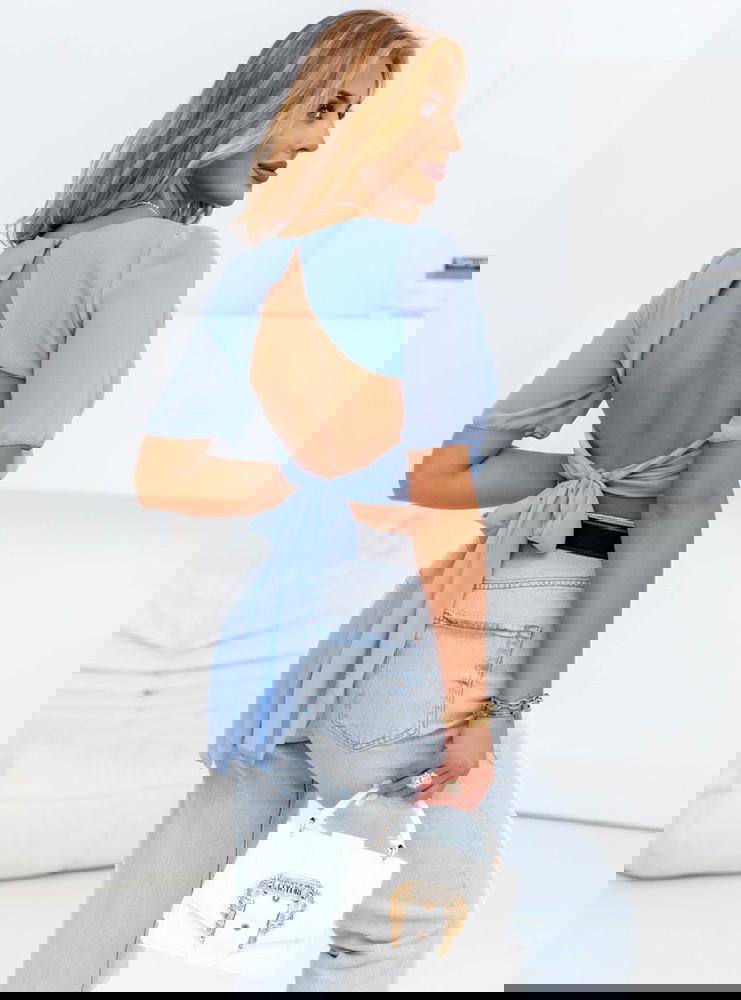 Błękitny top wiązany na plecach Lavonna to połączenie minimalistycznej bazy z modnymi detalami. Jego krój podkreśla sylwetkę i nadaje lekkości całej stylizacji. Wiązanie na plecach jest efektowne, ale także praktyczne. Dekolt w kształcie litery V sprawia, że top wygląda bardzo kobieco. To świetny wybór na cieplejsze dni i stylizacje z charakterem. Z łatwością dopasujesz go do swojego stylu. Jeśli szukasz czegoś świeżego, modnego i uniwersalnego – ten top spełni Twoje oczekiwania.