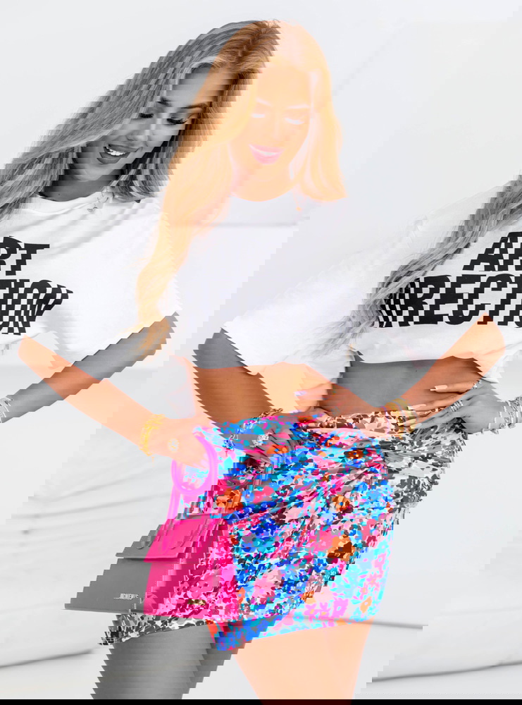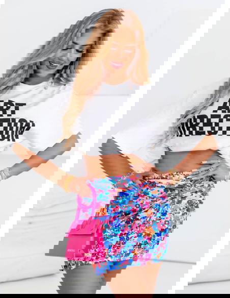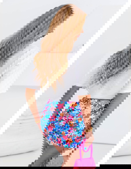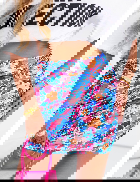Dopasowana spódniczka mini w kwiaty Kendrah - wzór 5 doda Ci pewności siebie i kobiecej lekkości. Wyraziste, żywe kolory przyciągają wzrok i od razu poprawiają nastrój. Kwiatowy wzór w różowo-niebieskiej palecie wprowadza nutę świeżości i wiosenno-letniego klimatu niezależnie od pory roku. To doskonała propozycja dla kobiet, które lubią wyróżniać się z tłumu, ale w sposób subtelny i z klasą. Dopasowany krój podkreśla sylwetkę i świetnie współgra zarówno z krótkimi topami, jak i oversizowymi t-shirtami. Delikatne marszczenie z przodu dodaje spódniczce lekkości i nowoczesnego twistu. Jest krótka, ale jednocześnie bardzo kobieca – idealna do miejskich stylizacji i letnich wyjść. Możesz ją nosić na wiele sposobów – za każdym razem stworzy zupełnie inny look. To ubranie, które nie tylko wygląda dobrze, ale też sprawia, że Ty czujesz się świetnie. Odważna, modna i niezwykle uniwersalna – idealna do urozmaicenia Twojej garderoby.