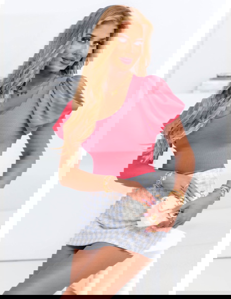 Różowe body z bufiastymi rękawami Cammy spełni Twoje oczekiwania w 100%. Jego intensywny kolor przyciąga wzrok i dodaje energii każdemu outfitowi. Model ten wyróżnia się efektownym połączeniem dopasowanego fasonu i romantycznych, marszczonych rękawów. To doskonały wybór dla kobiet, które lubią łączyć wygodę z modą. Dzięki elastycznemu krojowi body pięknie podkreśla sylwetkę, jednocześnie nie krępując ruchów. Bufiaste rękawy dodają lekkości i tworzą modny, bardzo kobiecy efekt. To propozycja, która sprawdzi się o każdej porze roku – wystarczy zmienić dodatki. Body świetnie wygląda zarówno solo, jak i pod marynarką lub kardiganem. To modna baza do wielu różnych stylizacji – od casualowych po bardziej eleganckie. Niezależnie od okazji, zawsze będziesz wyglądać stylowo i świeżo.