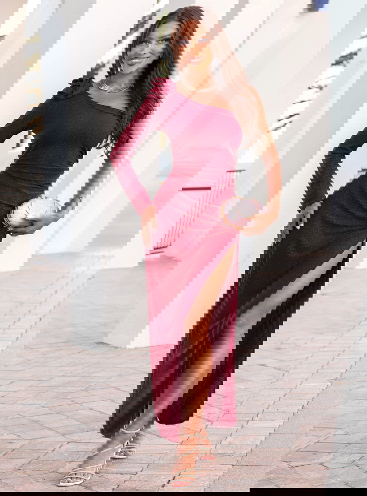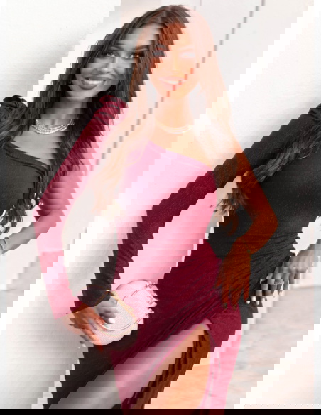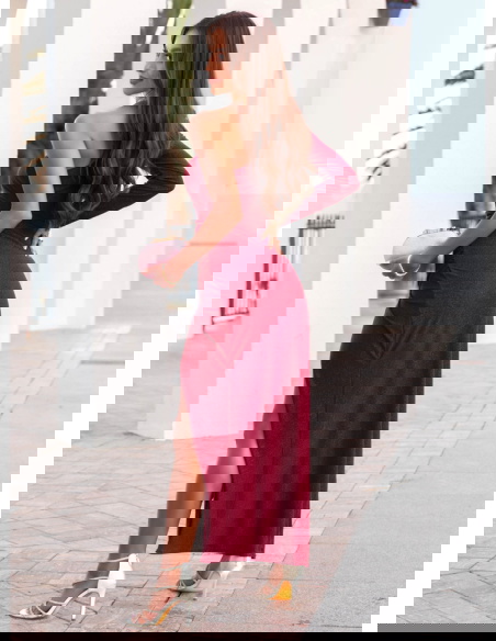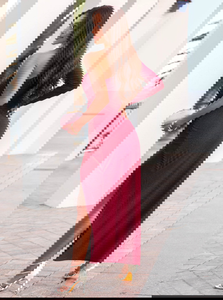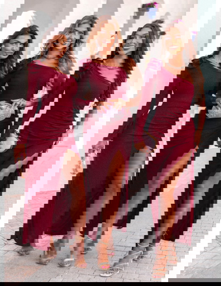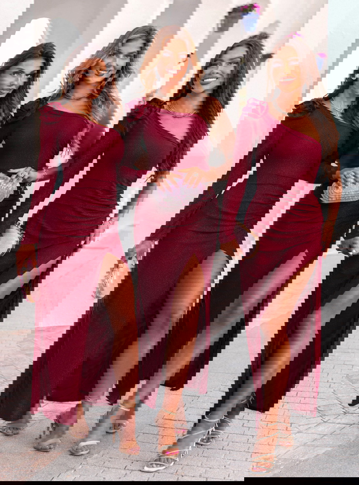 Bordowa błyszcząca sukienka z ozdobną różą Melitona to kwintesencja stylu i kobiecej energii. Połączenie klasyki z nowoczesną formą sprawia, że każda kobieta poczuje się w niej wyjątkowo. Detale, takie jak róża i rozcięcie, nadają charakteru, a materiał pięknie podkreśla ruch. W kolekcji Costa Del Amor to jedna z tych propozycji, która zapada w pamięć.