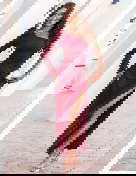 Bordowa błyszcząca sukienka z ozdobną różą Melitona to propozycja, która przyciąga spojrzenia od pierwszego kroku. Wyróżnia się nie tylko połyskującym wykończeniem, ale też wyjątkowym fasonem, który eksponuje sylwetkę i dodaje jej zmysłowości. Asymetryczny krój z jednym rękawem i efektownym rozcięciem nadaje sukience charakteru i lekkości. Rzeźbiarska róża przy ramieniu wprowadza romantyczny akcent, który od razu przywodzi na myśl śródziemnomorskie inspiracje. To model stworzony z myślą o pewnych siebie kobietach, które lubią błyszczeć i podkreślać swój styl. Subtelny połysk pięknie odbija światło – zarówno dzienne, jak i wieczorne – co czyni tę sukienkę idealną na bardziej uroczyste chwile. Odcień głębokiego wina podkreśla elegancję, ale i nowoczesność całości. Ta sukienka nie potrzebuje wielu dodatków – sama w sobie stanowi efektowną stylizację. W kolekcji Costa Del Amor stanowi jeden z najbardziej wyrazistych modeli. Idealna, jeśli szukasz czegoś nieoczywistego, kobiecego i z charakterem.
