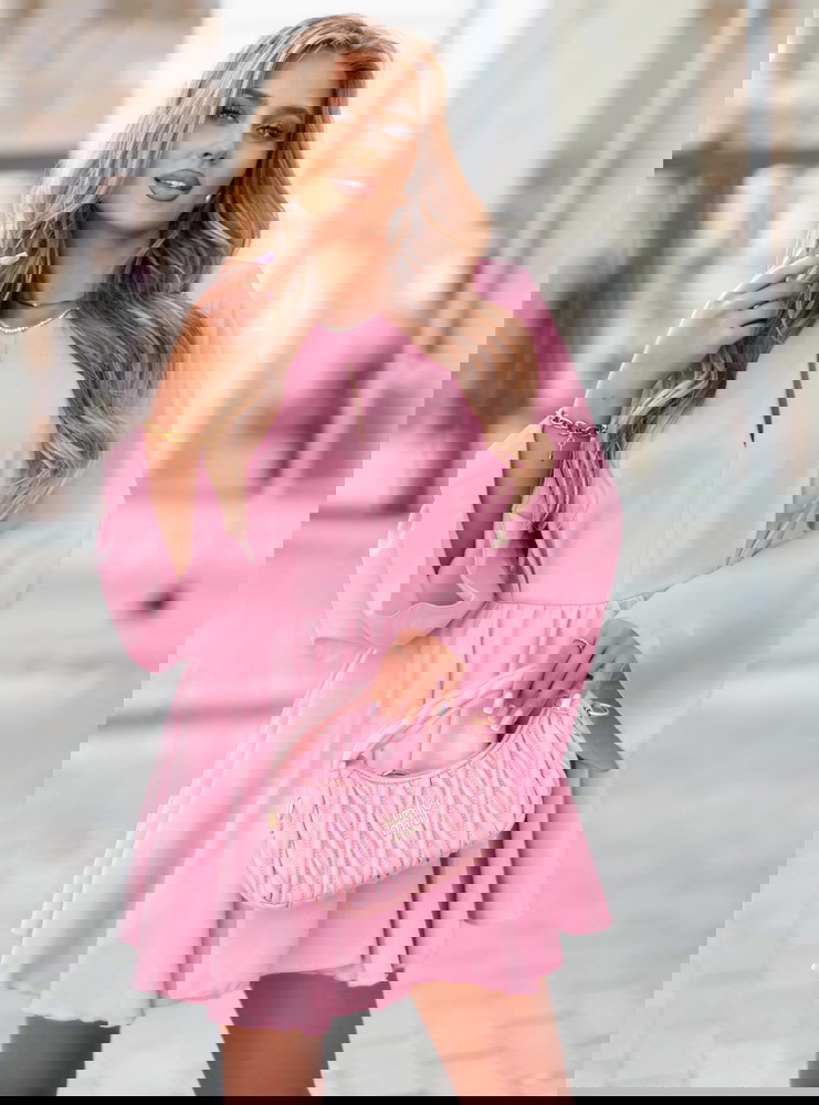 Pudrowy kombinezon jak sukienka wiązany w talii Avelinaa wygląda jak klasyczna, dziewczęca sukienka, ale w rzeczywistości to sprytnie zaprojektowany kombinezon. Rozkloszowany dół dodaje mu lekkości i swobody, a ukryte spodenki zapewniają komfort podczas każdego ruchu. Idealnie układa się w tańcu, na spacerze i podczas codziennych aktywności. Wiązanie w talii pozwala pięknie podkreślić sylwetkę i dopasować fason do własnych preferencji. Rękawy o luźniejszym kroju nadają całości delikatnego, romantycznego charakteru. Subtelny dekolt z niewielkim rozcięciem przyciąga uwagę, ale pozostaje gustowny. Ten kombinezon to znakomita alternatywa dla klasycznych sukienek mini. Świetnie sprawdzi się w wielu stylizacjach – zarówno z sandałkami, jak i sneakersami. To uniwersalny model, który szybko stanie się jednym z Twoich ulubionych.