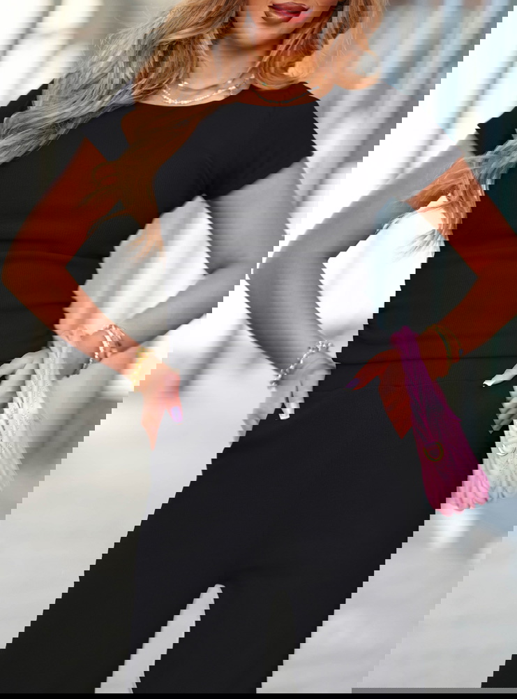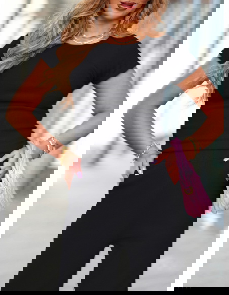 Czarny komplet prążkowany bluzka i szerokie spodnie Katheryn to idealny komplet na co dzień – do pracy, na zakupy, podróże lub spotkania z przyjaciółmi. Dzięki swojej prostocie sprawdzi się też jako baza pod elegantszą stylizację z marynarką lub szpilkami. W wersji casual wystarczy dodać sneakersy i torebkę typu shopper. Komplet jest wygodny, przewiewny i stylowy, dlatego świetnie sprawdzi się w sezonie na każdy sezon. To must-have w garderobie każdej kobiety ceniącej komfort i dobry styl.