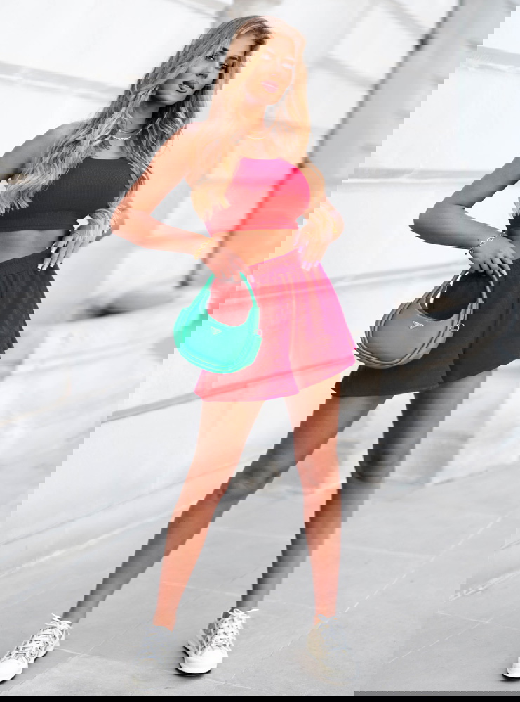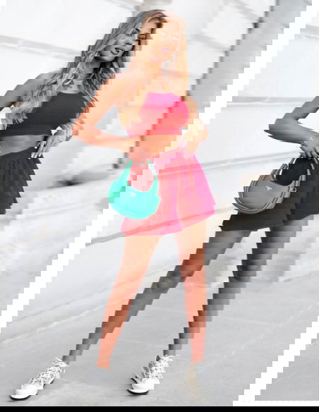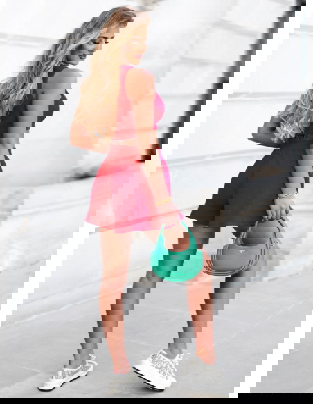 Malinowy prążkowany komplet top i spodenki Eladiaa to idealne połączenie komfortu i modnego designu. Dzięki dopasowanemu krojowi podkreśla sylwetkę, jednocześnie gwarantując wygodę. Prążkowana struktura dodaje mu stylowego sznytu, który nigdy nie wychodzi z mody. Kompletny zestaw doskonale sprawdzi się w sezonie letnim, zarówno na co dzień, jak i podczas wyjątkowych momentów.