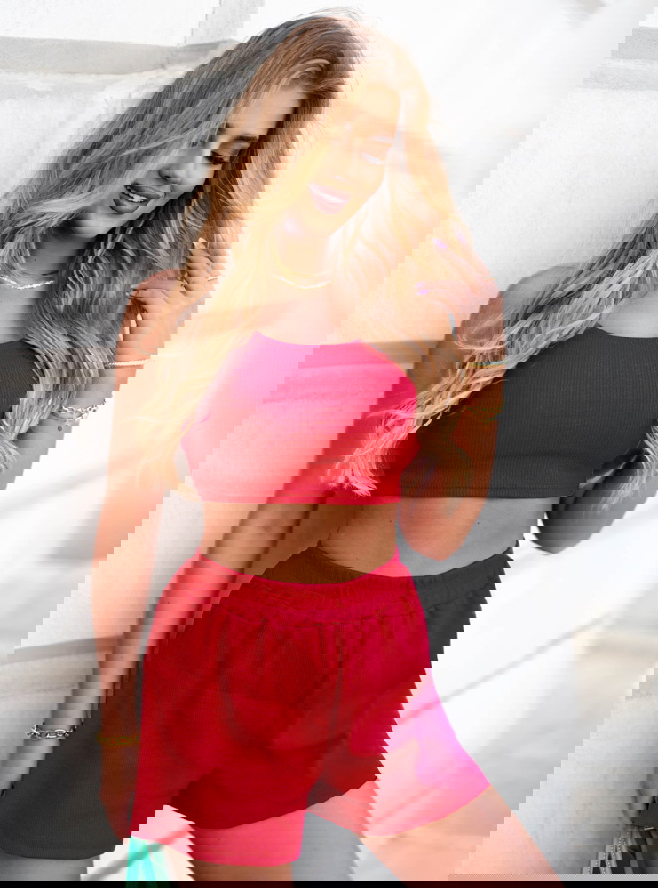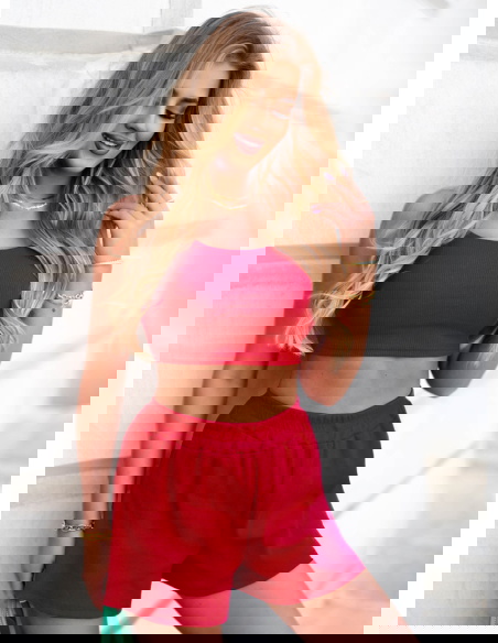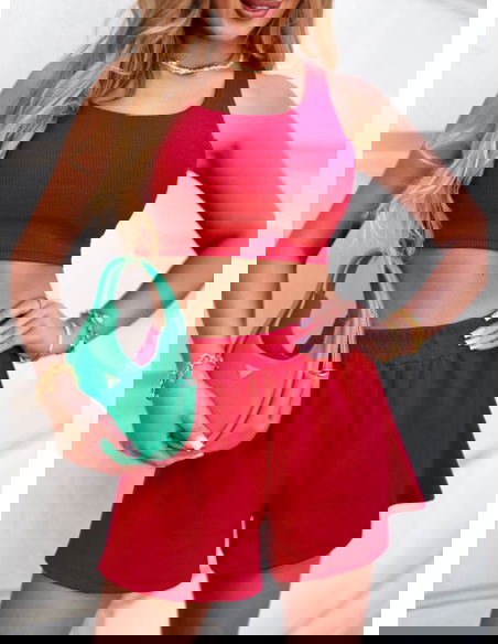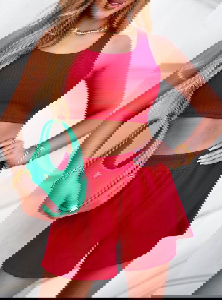 Malinowy prążkowany komplet top i spodenki Eladiaa