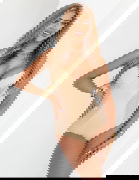Beżowe dopasowane body wyszczuplające Naylise to must-have dla każdej kobiety, która chce podkreślić swoje naturalne kształty i poczuć się pewnie. Ten model łączy w sobie elegancję i funkcjonalność, dzięki czemu sprawdzi się w wielu stylizacjach. Jego przemyślany krój modeluje sylwetkę, wysmuklając talię i optycznie wygładzając linię bioder. Body doskonale dopasowuje się do ciała, zapewniając wygodę i komfort przez cały dzień.