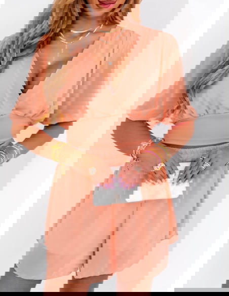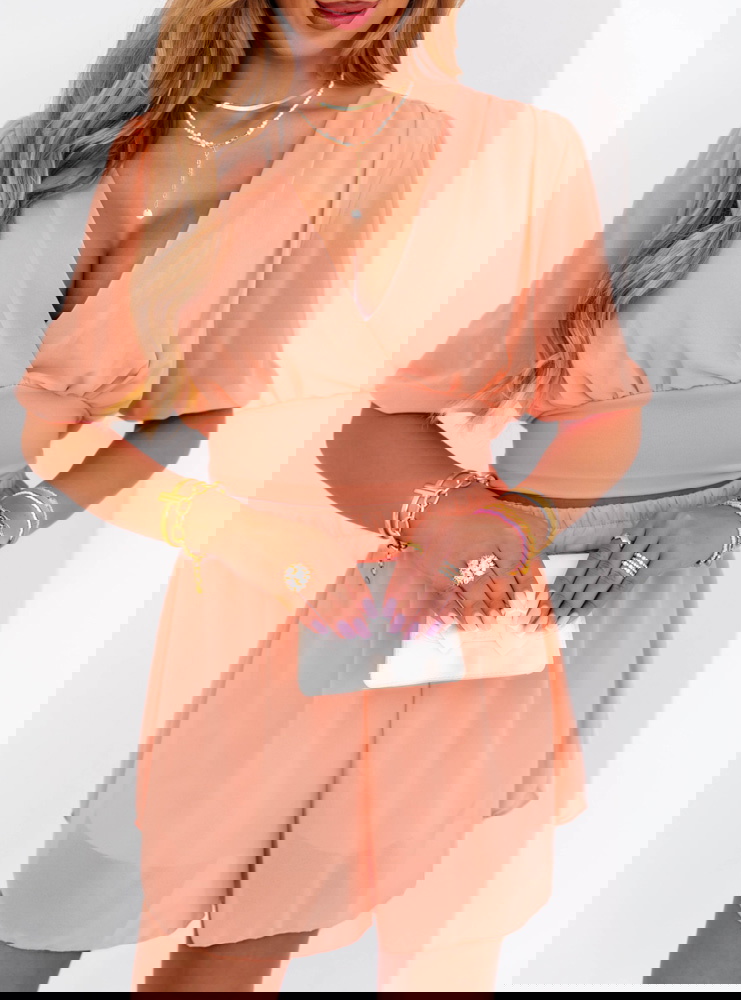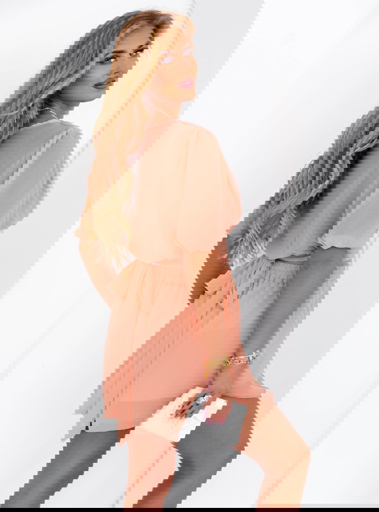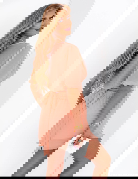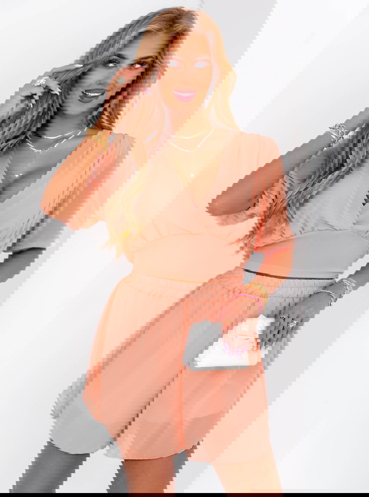 Pudrowy komplet top i spodenki Nevenaa to prawdziwa definicja letniej świeżości i luzu z nutą elegancji. Głęboki, ale subtelny dekolt w topie pięknie podkreśla linię szyi i ramion. Zwiewny materiał delikatnie układa się na sylwetce, dodając lekkości i dziewczęcego uroku. Spodenki z elastycznym pasem zapewniają wygodę noszenia i pełną swobodę ruchów. Komplet sprawdzi się doskonale na upalne dni – nie tylko wygląda świetnie, ale też zapewnia komfort.