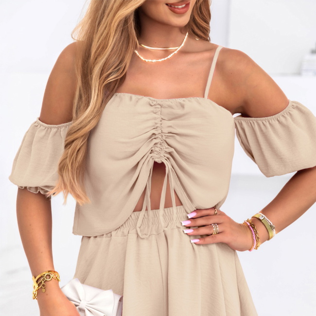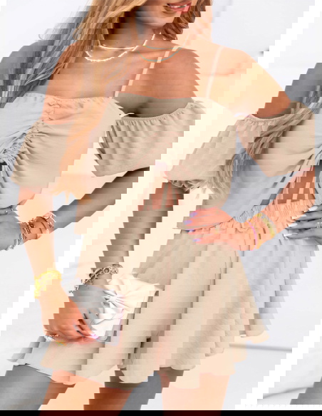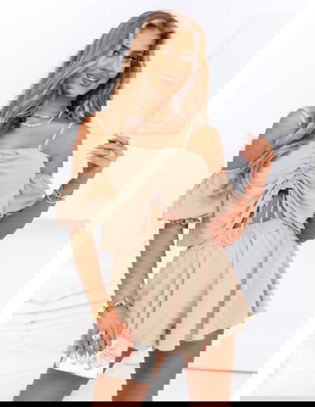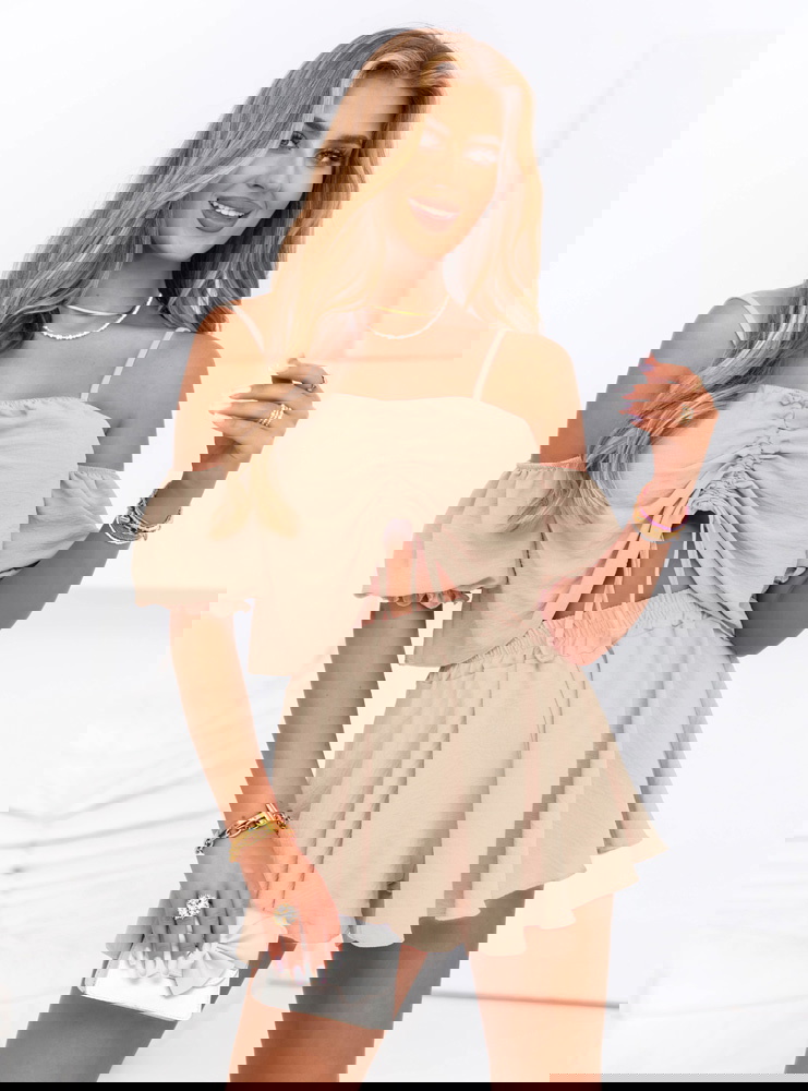 Beżowy komplet top i krótkie spodenki Dylaa