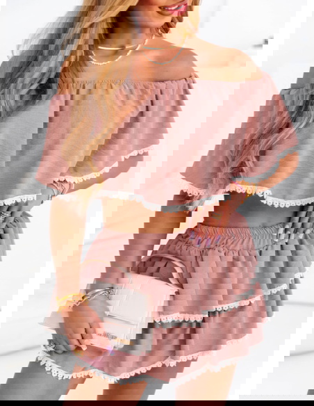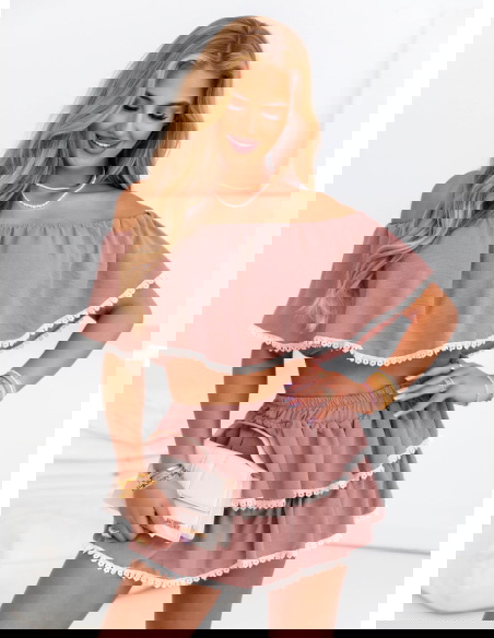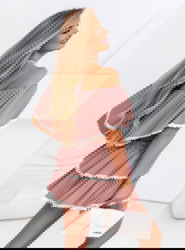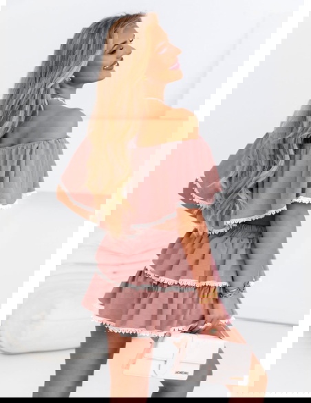 Komplet top i spódnico-spodenki z falbankami Udela - brudny róż