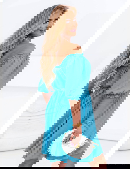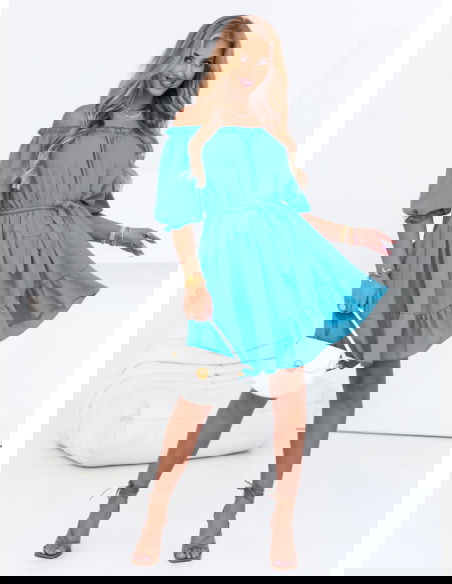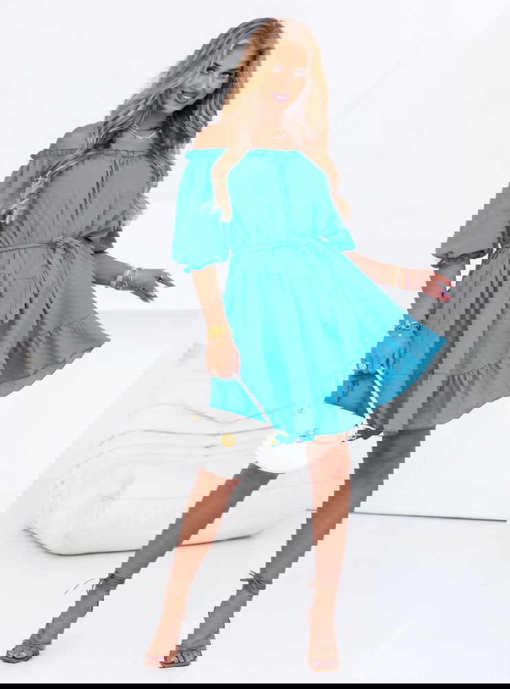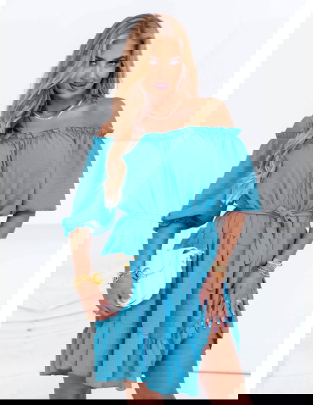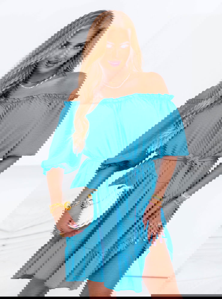 Niebieska sukienka typu hiszpanka Sarona to zdecydowanie jeden z nich. Sukienka z odkrytymi ramionami to klasyka kobiecej garderoby w lekkim, bardzo stylowym wydaniu. Jej zwiewny krój sprawia, że prezentuje się niezwykle kobieco i romantycznie. Delikatnie odsłonięte ramiona dodają subtelnego uroku i lekkości całej stylizacji. To model, który pięknie podkreśla dekolt i wysmukla sylwetkę. Dzięki wiązaniu w talii zyskujesz idealne proporcje – podkreśloną talię i swobodę w biodrach.