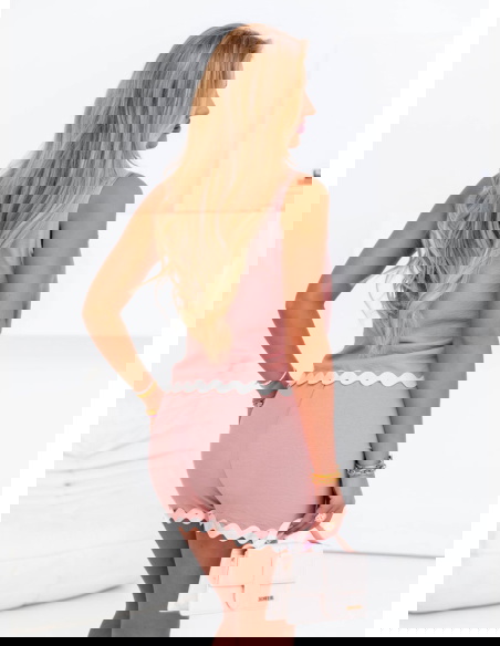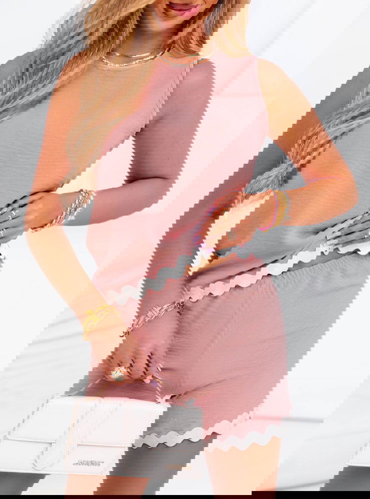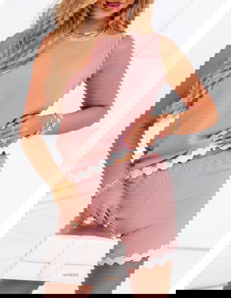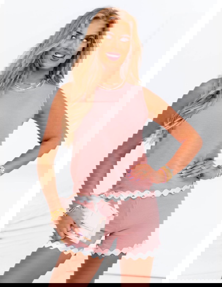 Komplet bluzka + spodenki Aora - brudny róż to prawdziwy strzał w dziesiątkę dla kobiet ceniących modę i komfort. Łączy w sobie prostotę i urok, a dzięki uniwersalnemu fasonowi sprawdzi się na wiele okazji. Stylizacja jest spójna i gotowa – nie musisz się zastanawiać, co do czego dobrać. Detale takie jak falowana lamówka nadają całości lekkości i uroku. To świetny wybór na ciepłe dni i codzienne aktywności. Wystarczy dobrać ulubione dodatki, aby stworzyć swobodny, a zarazem kobiecy look. Jeśli szukasz praktycznego, ale stylowego zestawu – właśnie go znalazłaś.