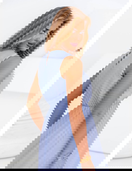 Błękitna sukienka maxi z rozcięciem Erlea to prawdziwy hit wśród letnich stylizacji. Jej delikatny odcień przyciąga wzrok i dodaje świeżości każdej garderobie. Krój podkreśla sylwetkę, jednocześnie pozostawiając komfort i swobodę ruchów. Rozcięcie z boku nadaje całości subtelnej zmysłowości, bez przesady. Dzięki lekkiemu fasonowi sukienka pięknie się układa i faluje przy każdym kroku. Góra na delikatnych ramiączkach oraz zabudowany dekolt sprawiają, że całość wygląda nowocześnie i stylowo. To propozycja, która pozwala poczuć się kobieco i pewnie, niezależnie od sytuacji. Dodatek w postaci torebki czy biżuterii w ciepłych odcieniach świetnie dopełni całość. Sukienka wpisuje się zarówno w casualowe, jak i bardziej eleganckie klimaty. To must-have sezonu dla każdej kobiety, która ceni modę i wygodę.