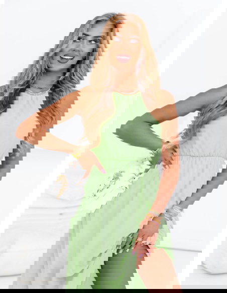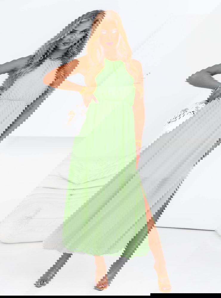 Miętowa sukienka maxi z rozcięciem Erlea to świetna baza do budowania modnych, letnich looków. Dzięki niej stworzysz wiele udanych stylizacji na różne okazje. Każdy detal sukienki został zaprojektowany z myślą o kobiecym pięknie i swobodzie. Wybierz ją, jeśli szukasz czegoś efektownego, ale nieprzytłaczającego.