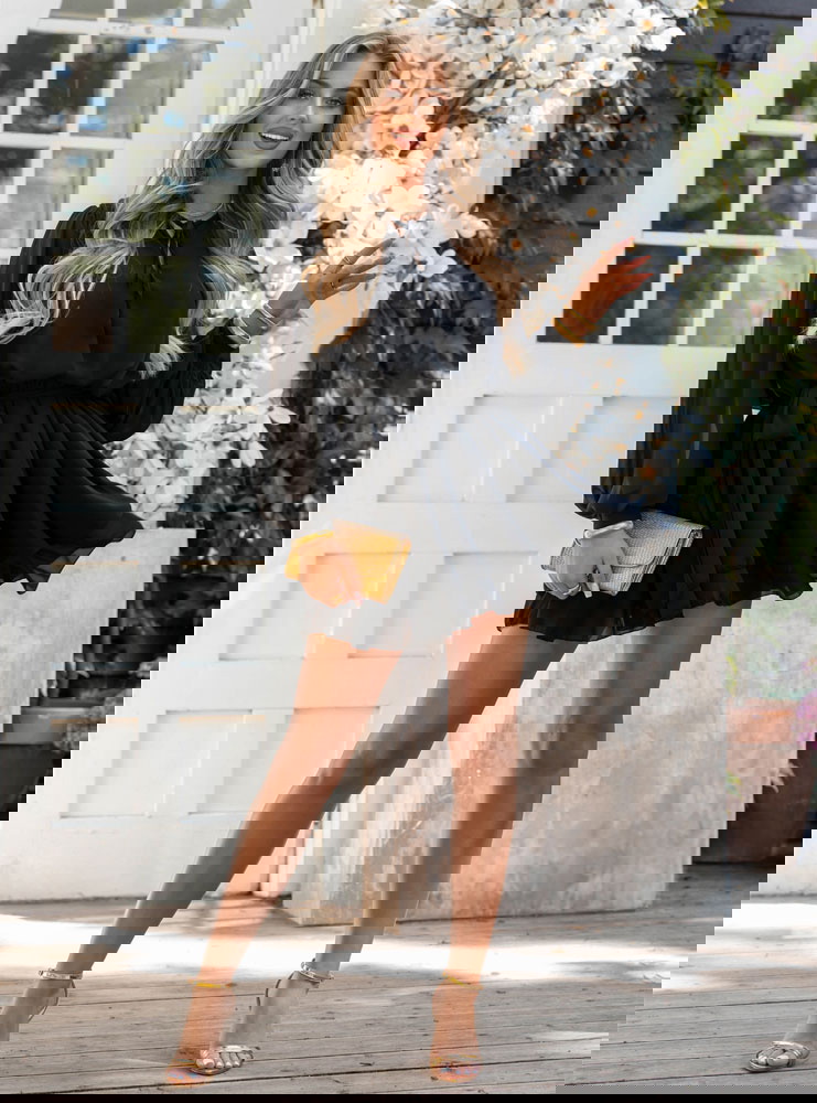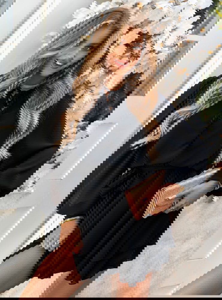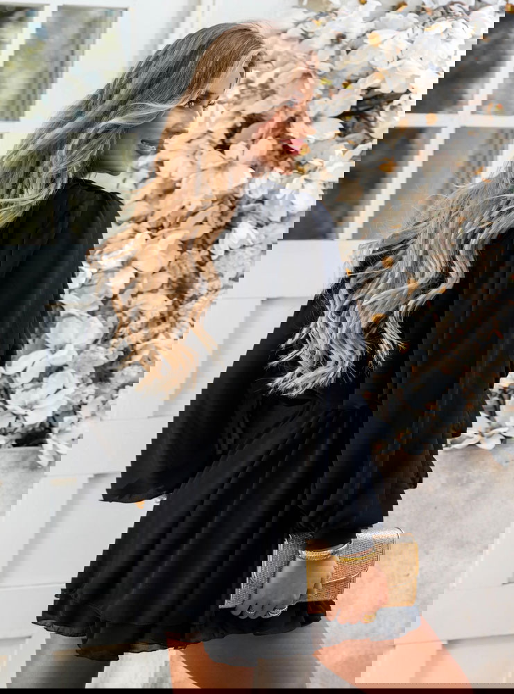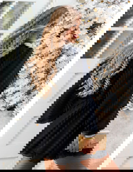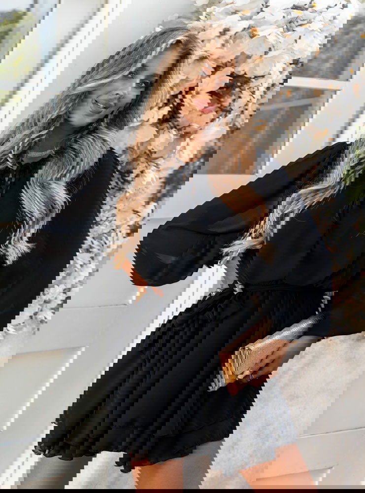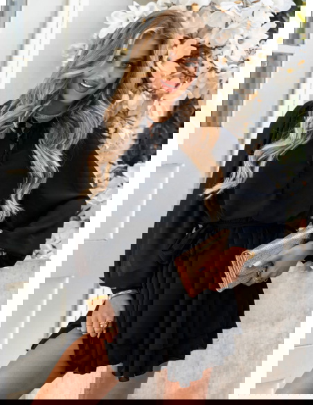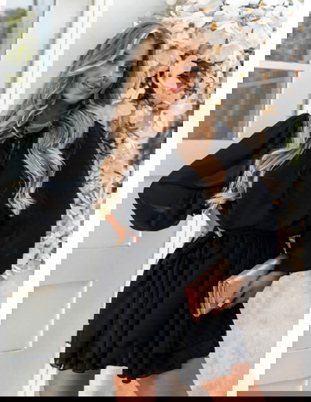 Czarna szyfonowa sukienka mini Rosefline to must-have w szafie każdej kobiety. Łączy w sobie romantyzm, elegancję i codzienną wygodę. Dzięki lekkiej tkaninie pięknie układa się na ciele i daje wrażenie lekkości. Krój z długimi rękawami i falbanami sprawia, że sukienka wygląda bardzo efektownie, ale nie przesadnie. Możesz ją wystylizować na wieczorne wyjście lub ubrać na bardziej codzienną okazję.