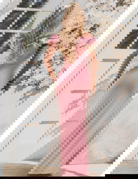 Długa sukienka typu hiszpanka z falbanką Nayme - brudny róż