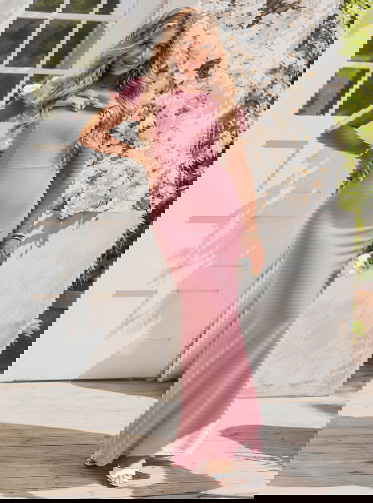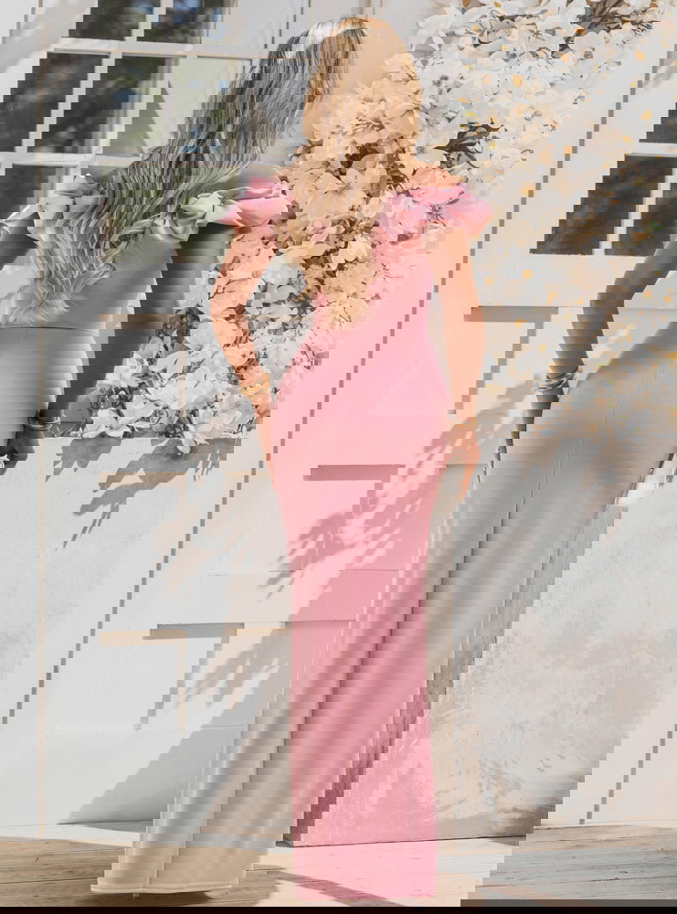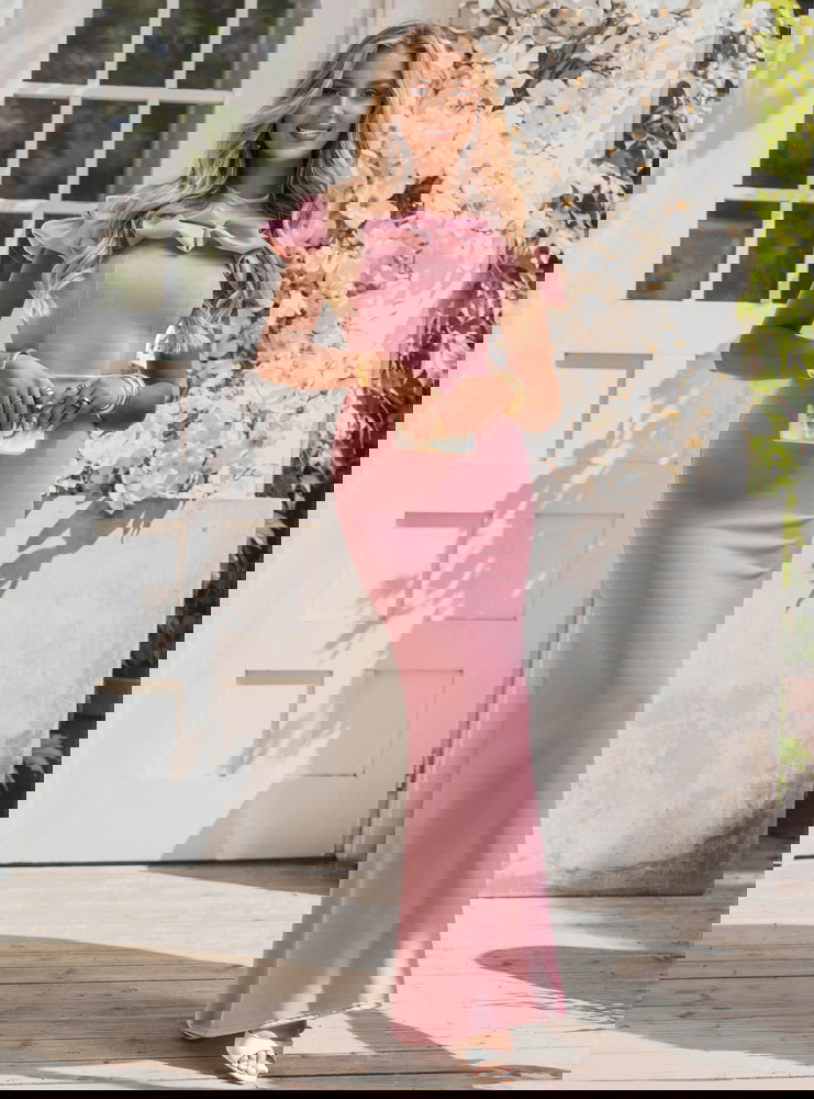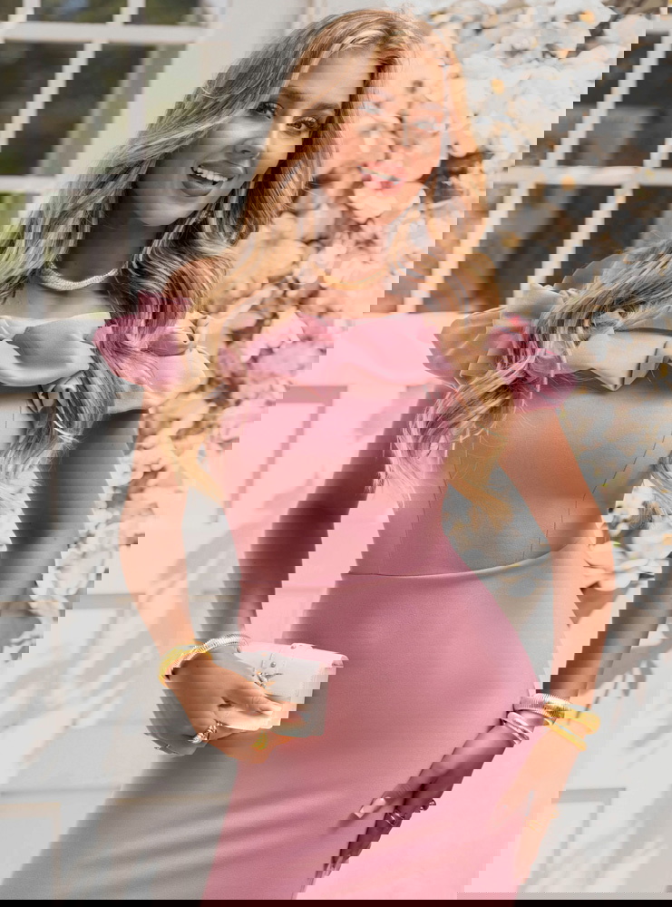 Długa sukienka typu hiszpanka z falbanką Nayme - brudny róż to idealna propozycja dla kobiet, które chcą poczuć się elegancko, stylowo i wyjątkowo kobieco. Jej pastelowy róż wprowadza świeżość i subtelny romantyzm, który przyciąga spojrzenia bez krzykliwości. Góra sukienki z efektowną falbaną podkreśla linię ramion, dodając sylwetce lekkości. Krój typu hiszpanka odsłania ramiona w zmysłowy, ale delikatny sposób. Długość maxi optycznie wydłuża sylwetkę i dodaje klasy każdej stylizacji. Dopasowany fason podkreśla figurę, nie krępując przy tym ruchów. To model, który pięknie układa się na ciele i pozwala poczuć się naprawdę wyjątkowo. Idealnie sprawdzi się podczas letnich przyjęć, wesel czy eleganckich kolacji. Sukienka prezentuje się równie efektownie na żywo, co na zdjęciach. To stylizacja, która nie potrzebuje wielu dodatków – sama w sobie robi wrażenie.