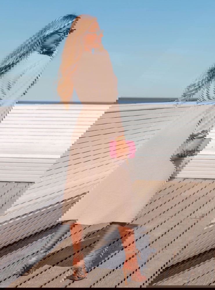 Beżowa sukienka midi z przekładanym...