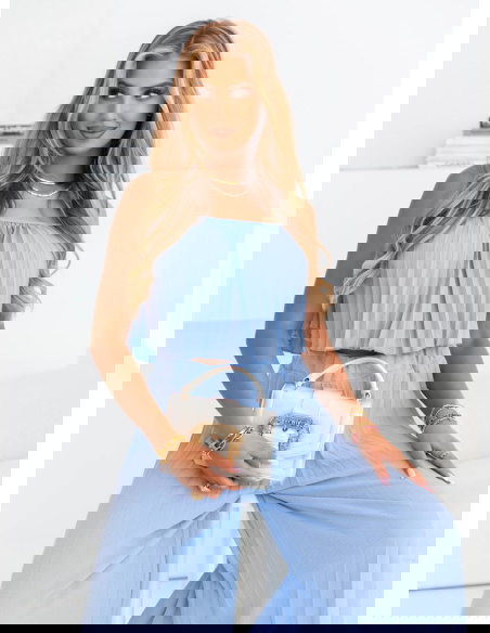 Błękitny plisowany komplet top i szerokie spodnie Minnias
