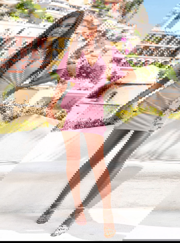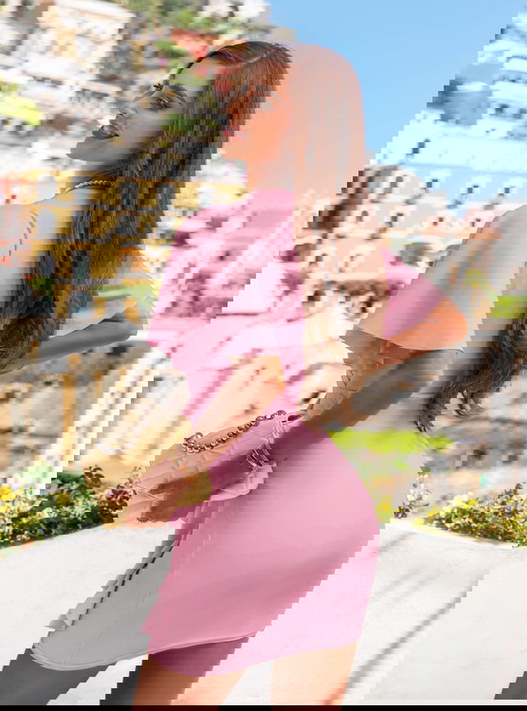Sukienka z przekładanym dekoltem Riccarda - brudny róż to propozycja, która łączy kobiecy wdzięk z nowoczesnym stylem, wpisując się perfekcyjnie w klimat kolekcji Positano. Jej dopasowany krój pięknie podkreśla figurę, a delikatnie opływający materiał zapewnia wygodę i swobodę ruchu. Przekładany dekolt eksponuje szyję i dekolt w subtelny, ale efektowny sposób. Kolor brudnego różu to uniwersalny wybór – romantyczny, ale nie przesłodzony, elegancki, ale nie zobowiązujący. Rękawy w formie luźnych fal nadają lekkości i uroku całej sylwetce. Ozdobna falbana z boku wprowadza ruch i ożywia całość, dodając jej modowego charakteru. To sukienka, która świetnie wygląda zarówno w ruchu, jak i na zdjęciach. Idealna na letnie wieczory, uroczystości, randki czy wakacyjne wyjścia – zawsze zrobi dobre wrażenie. Nie potrzebuje wiele – sama w sobie jest już mocnym punktem stylizacji. Jeśli szukasz modelu, który sprawi, że poczujesz się wyjątkowo – właśnie go znalazłaś.