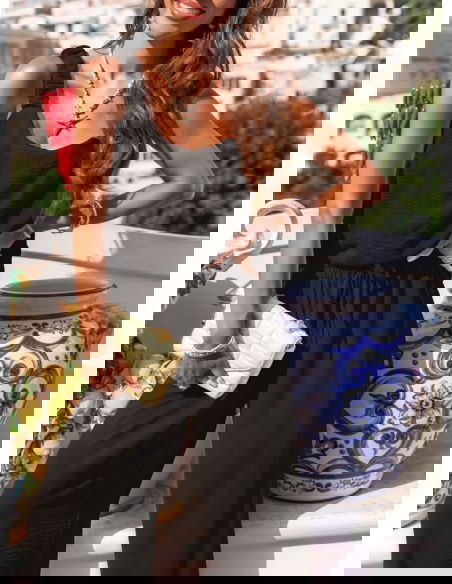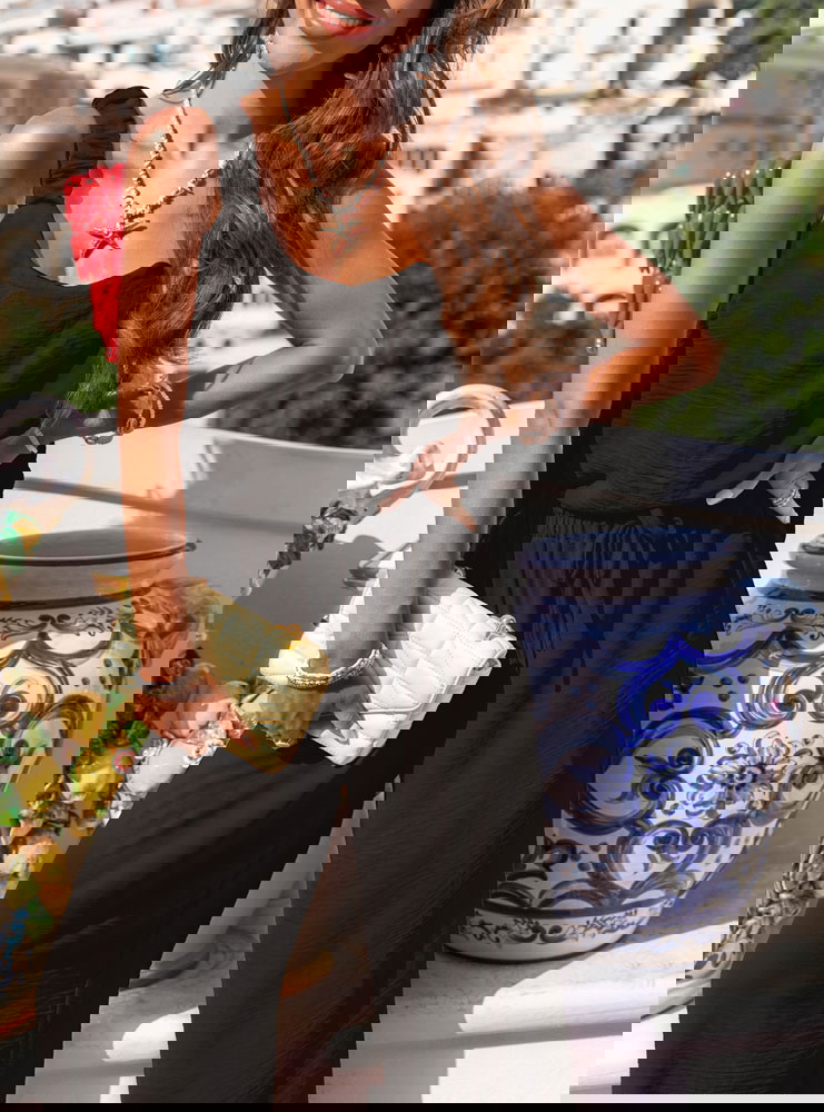 Czarny komplet bluzka i spodnie Serenaa to esencja wygodnej elegancji w letnim wydaniu, idealnie wpisująca się w założenia kolekcji Positano. Stylowy, minimalistyczny, a przy tym niezwykle kobiecy – ten zestaw to idealne rozwiązanie dla kobiet, które cenią komfort i klasę jednocześnie. Bluzka z szerokimi ramiączkami i delikatnie opływającym dekoltem nadaje sylwetce lekkości, a spodnie z szerokimi nogawkami tworzą piękną, wydłużoną linię. Luźny krój nie krępuje ruchów i świetnie sprawdza się w ciepłe dni. Czarny kolor dodaje całości ponadczasowego charakteru, dzięki czemu komplet łatwo dopasować do wielu okazji. Elastyczna talia zapewnia wygodę i pozwala na swobodne dopasowanie do sylwetki. Komplet wygląda świetnie zarówno w całości, jak i noszony osobno – bluzkę możesz zestawić ze spódnicą, a spodnie z ulubionym topem. To look, który sprawdza się zarówno na wakacjach, jak i w mieście. Wystarczy dodać złotą biżuterię, torebkę i gotowe – stylizacja na lato bez wysiłku. Ten model to definicja współczesnego komfortu w wersji stylowej.