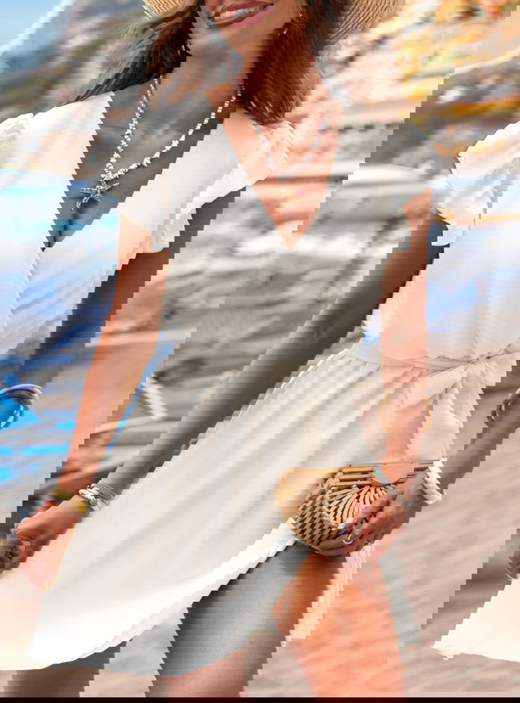 Biała sukienka z przekładanym dekoltem Cleliaa to doskonały wybór na wakacyjne wyjazdy, spacery nad morzem, ale też letnie spotkania w mieście. Można ją wystylizować casualowo – z sandałkami i plecioną torebką, lub elegancko – z obcasami i biżuterią.