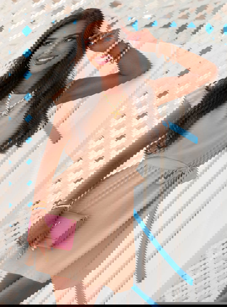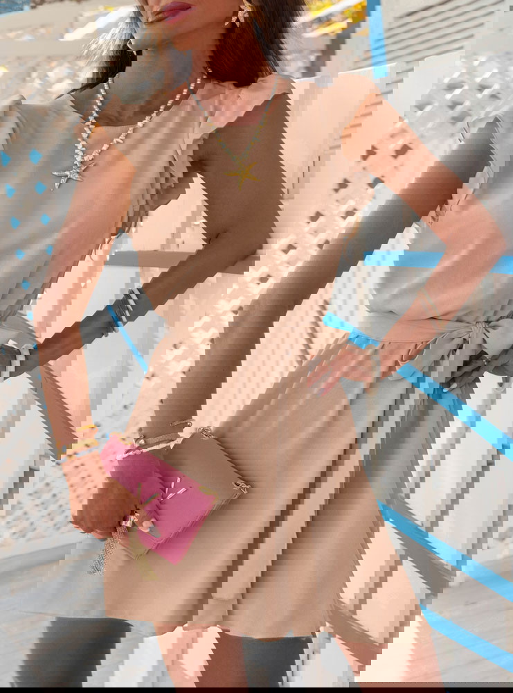 Beżowa sukienka z wiązaniem w talii Lucillaa to idealny model na letnie wyjścia – zarówno te bardziej codzienne, jak i wyjątkowe. Sprawdzi się na spacer po nadmorskim bulwarze, brunch w ulubionej kawiarni, ale też rodzinne uroczystości.