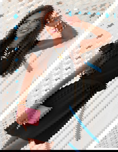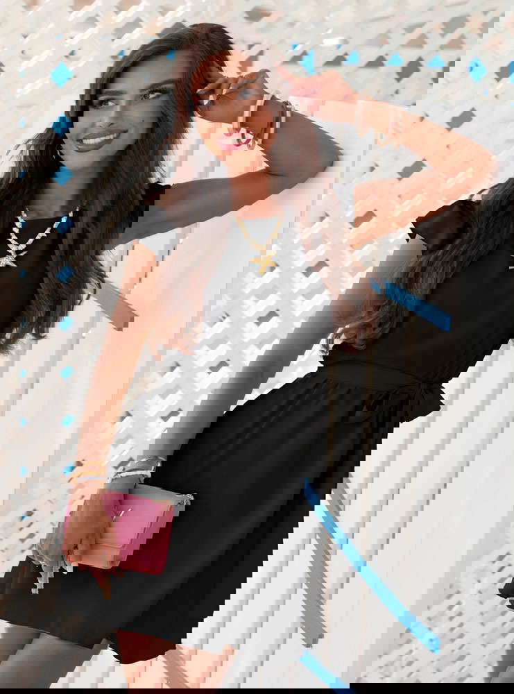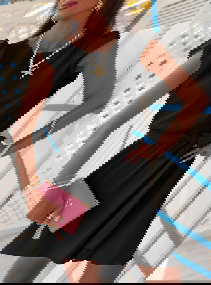 Czarna sukienka z wiązaniem w talii Lucillaa to esencja prostoty, klasy i kobiecości – dokładnie taka, jakiej oczekujesz od letnich stylizacji z kolekcji Positano. To model, który przyciąga swoją subtelnością i ponadczasowym charakterem. Lekki krój sprawia, że czujesz się w niej swobodnie przez cały dzień. Delikatne falbanki przy rękawkach dodają uroku i łagodnego wykończenia. Wiązanie w talii pięknie podkreśla sylwetkę, a przy tym pozwala dopasować sukienkę idealnie do figury. Czarny kolor to gwarancja uniwersalności – pasuje na każdą okazję i daje wiele możliwości stylizacyjnych. To sukienka, która łączy w sobie luz i elegancję – idealna do klapek, sandałków czy balerin. Jej krótka długość dodaje lekkości i sprawia, że świetnie wygląda zarówno w ruchu, jak i na zdjęciach. Sprawdzi się na spacerze, podczas kolacji, a nawet w biurze. To model, który stanie się Twoją letnią bazą – bez wysiłku, z efektem „wow”.