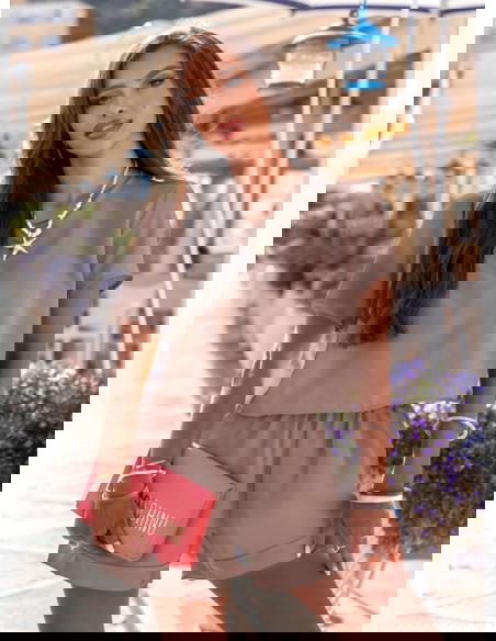 Komplet koszulka i szorty Tamo - mocha mousse to doskonały wybór dla kobiet, które cenią sobie styl i komfort w letnim wydaniu. Model stworzony z myślą o kolekcji Positano, w której każdy element ma przywoływać beztroski klimat włoskiego wybrzeża. Ciepły odcień mocha mousse nawiązuje do słonecznych poranków przy espresso i leniwych spacerów wąskimi uliczkami. To propozycja dla miłośniczek prostoty, która nie rezygnuje z wyrazu. Minimalistyczny krój idealnie łączy się z wakacyjnym luzem, a jednocześnie pozostaje bardzo kobiecy. Krótsza, luźna koszulka i dopasowane w talii szorty tworzą harmonijną, lekką sylwetkę. Komplet świetnie wygląda zarówno solo, jak i w towarzystwie bardziej wyrazistych dodatków. Możesz stylizować go na wiele sposobów – to baza, z której łatwo stworzyć coś wyjątkowego. Idealny na lato, ale nie tylko – ten zestaw będzie z Tobą przez wiele sezonów. W kolekcji Positano pełni rolę uniwersalnego klasyka w nowoczesnym wydaniu.