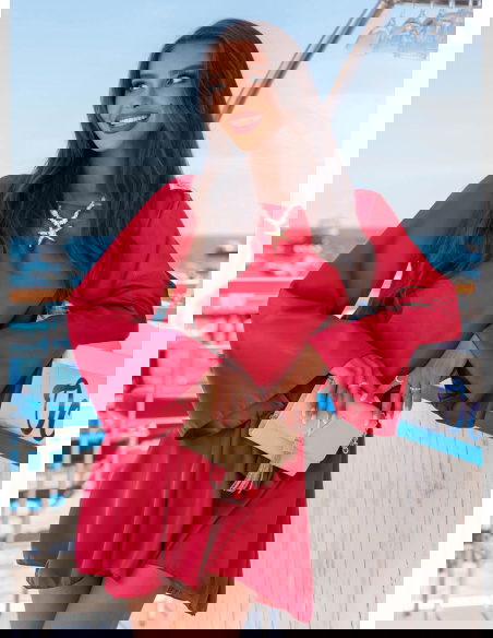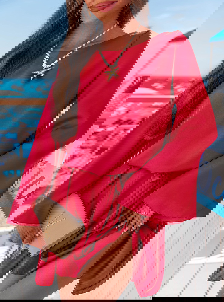 Malinowa atłasowa sukienka z paskiem Cettina to esencja letniego stylu w wydaniu kolekcji Positano. To model, który przyciąga wzrok swoją barwą, a jednocześnie daje poczucie swobody i wygody. Głębia malinowego koloru pięknie podkreśla opaleniznę i pasuje zarówno do klasycznych, jak i bardziej wyrazistych dodatków. Lekko błyszczący materiał dodaje sukience eleganckiego wyrazu, ale bez przesadnej formalności. Dzięki luźnemu krojowi i regulowanemu paskowi możesz z łatwością dopasować ją do swojej sylwetki. Długie rękawy z delikatnie rozszerzanym mankietem dodają lekkości i równoważą krótszy dół. To sukienka, która pozwala czuć się pewnie i kobieco — bez wysiłku. Stylizacje z nią są proste, a efekt końcowy zawsze zachwyca. Doskonale wpisuje się w klimat włoskich uliczek, plażowych promenad czy wieczornych spotkań na tarasie. Positano Collection stworzyło model, który będzie Twoim wakacyjnym pewniakiem.