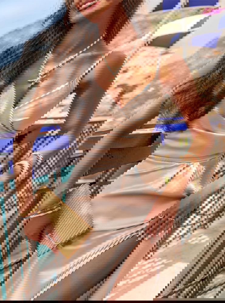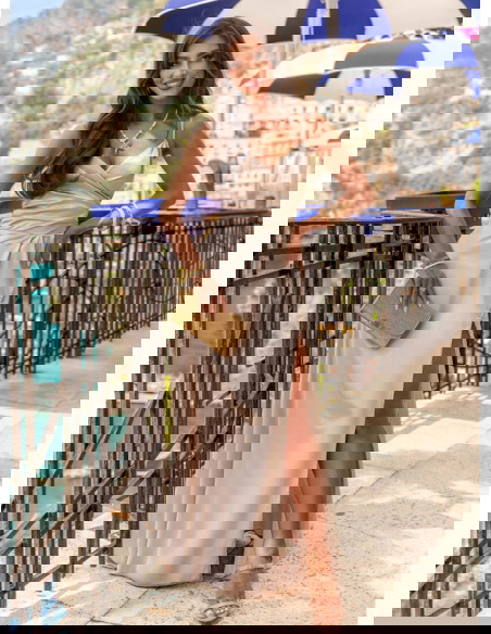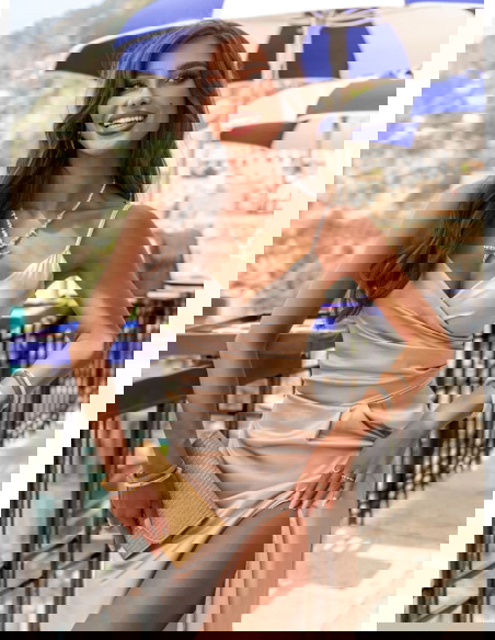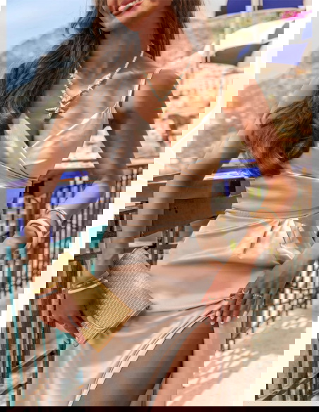 Beżowa sukienka maxi na ramiączkach z rozcięciem Milvia to jeden z najbardziej eleganckich modeli kolekcji Positano – inspirowanej włoską lekkością, zachodami słońca nad morzem i letnim stylem życia. To projekt, który łączy klasę z wakacyjną swobodą, dzięki czemu świetnie sprawdza się w wielu sytuacjach. Jej delikatny beżowy odcień przywołuje na myśl ciepły piasek pod stopami i leniwe dni spędzane nad brzegiem morza. Smukłe ramiączka oraz subtelny dekolt pięknie podkreślają ramiona i szyję. Rozcięcie na nodze dodaje zmysłowości i lekkości, zachowując przy tym elegancki charakter całości. To sukienka, która prezentuje się wyjątkowo efektownie w ruchu – lekko faluje, łagodnie otulając sylwetkę. Dopasowany fason subtelnie zaznacza talię i tworzy kobiecą linię. Choć jest minimalistyczna, to wyróżnia się przemyślanym krojem i detalami, które robią różnicę. Beżowa sukienka maxi to doskonała równowaga między ponadczasową prostotą a nowoczesnym szykiem. Jeśli marzysz o stylizacji w duchu Positano – ta propozycja jest stworzona właśnie dla Ciebie.