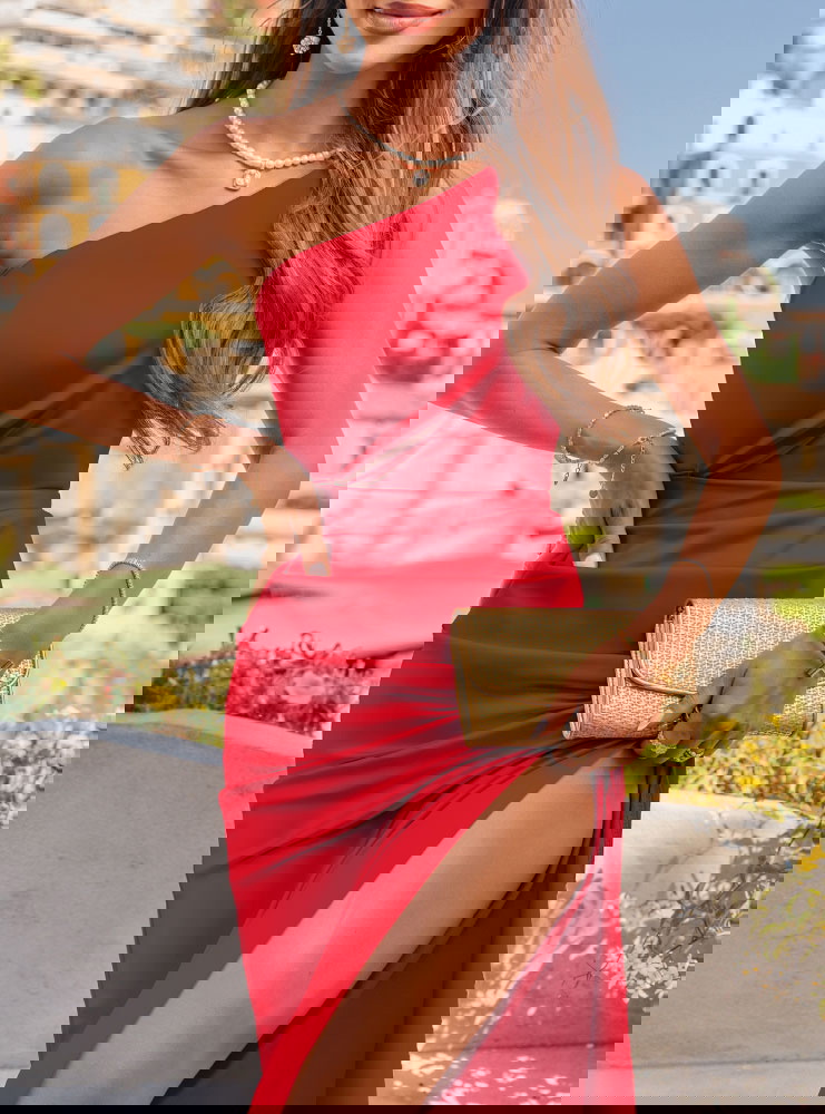 Malinowa długa sukienka z rozcięciem Elga to idealne połączenie klasyki i letniego uroku – wpisuje się perfekcyjnie w atmosferę kolekcji Positano. Jej intensywny kolor przyciąga wzrok i wprowadza energetyczny akcent do każdej stylizacji. To model, który z łatwością stanie się głównym elementem wieczornego looku. Inspirowana ciepłem południowych wieczorów, została zaprojektowana z myślą o kobietach, które kochają wyrazistość w subtelnym wydaniu. Asymetryczny dekolt na jedno ramię podkreśla ramiona i szyję, dodając sylwetce lekkości i nowoczesnej elegancji. Rozcięcie na nodze dodaje całości zmysłowego charakteru, ale nie odbiera sukience klasy. To propozycja idealna na specjalne okazje, kiedy chcesz poczuć się kobieco i wyjątkowo. Jej krój delikatnie opływa sylwetkę, podkreślając kształty w sposób naturalny. Sprawdzi się zarówno w towarzystwie delikatnych dodatków, jak i wyrazistej biżuterii. To sukienka, która nie potrzebuje wiele, by zrobić wrażenie – wystarczy ją założyć.
