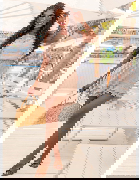 Beżowy muślinowy kombinezon jak sukienka Gratin to niezastąpiony element wakacyjnej garderoby. Łączy styl i wygodę, co czyni go uniwersalnym wyborem na wiele okazji. Subtelny kolor i kobiecy krój sprawiają, że każda kobieta poczuje się w nim wyjątkowo. Nie wymaga wiele – wystarczy ulubiona torebka i okulary przeciwsłoneczne, by stworzyć gotowy look.