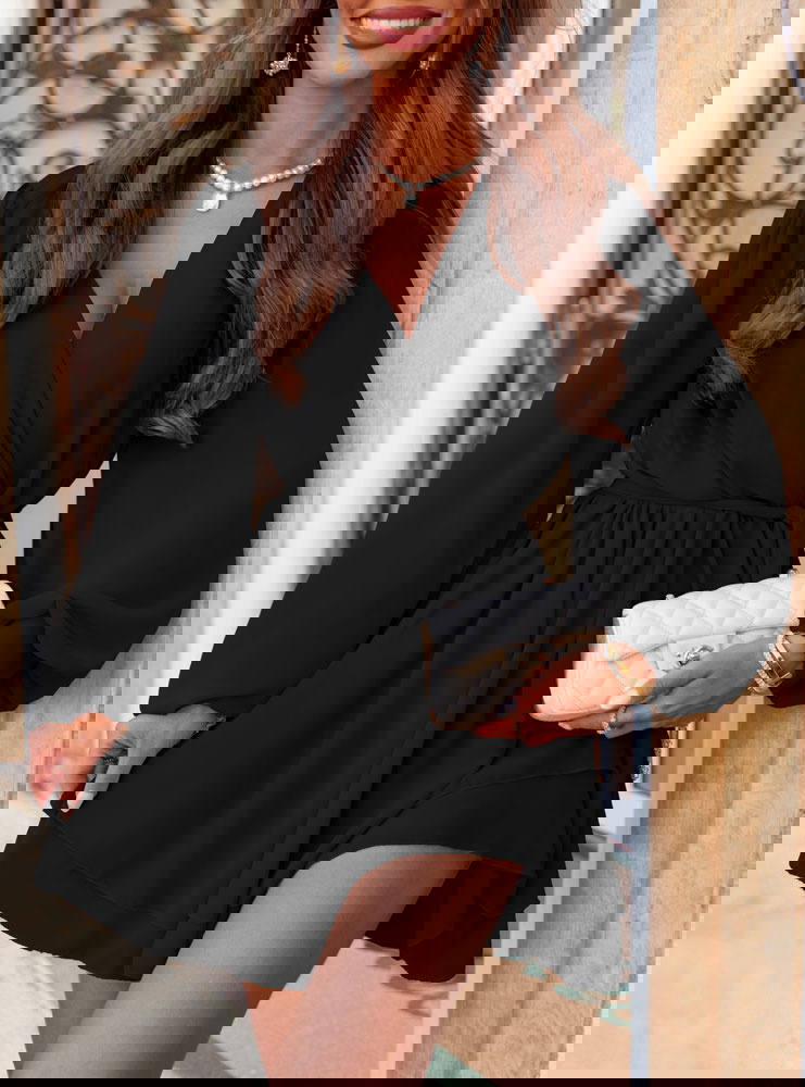 Czarna szyfonowa sukienka mini z przekładanym dekoltem Aspasia