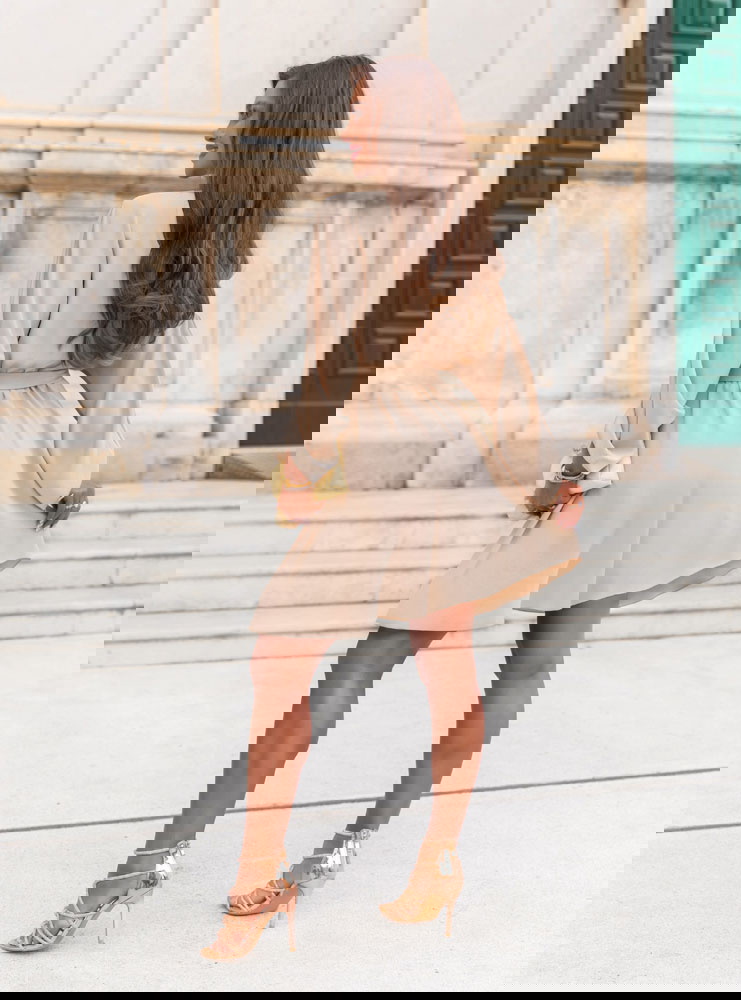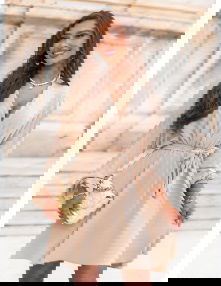 Beżowa sukienka mini z przekładanym dekoltem Anelitta