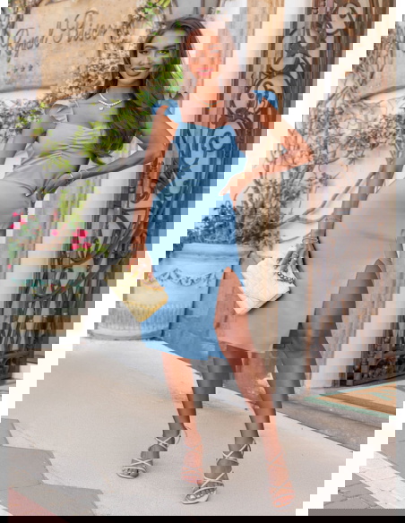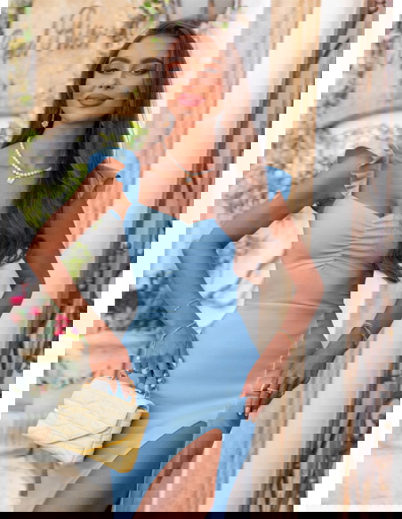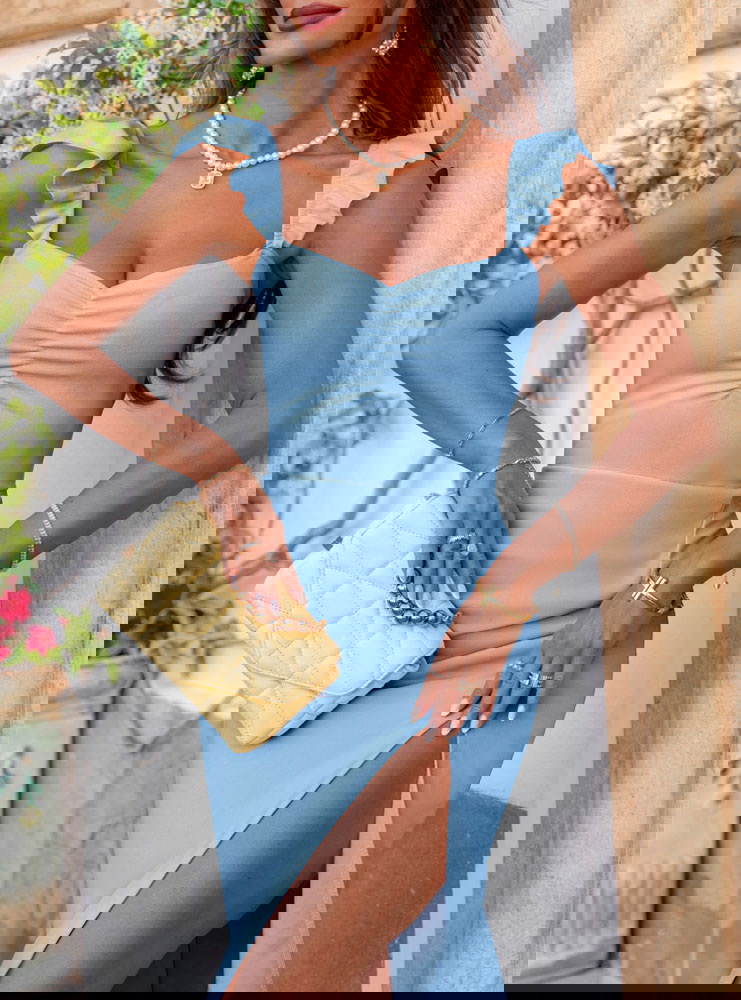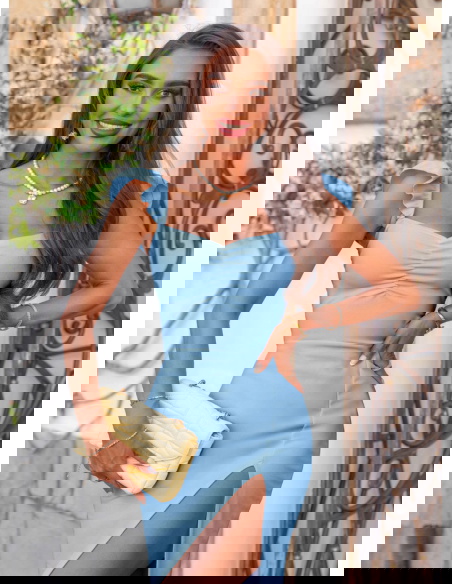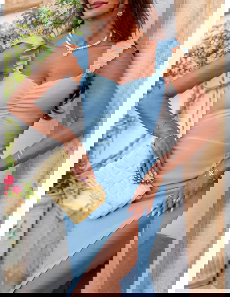 Błękitna sukienka z rozcięciem Nunzia