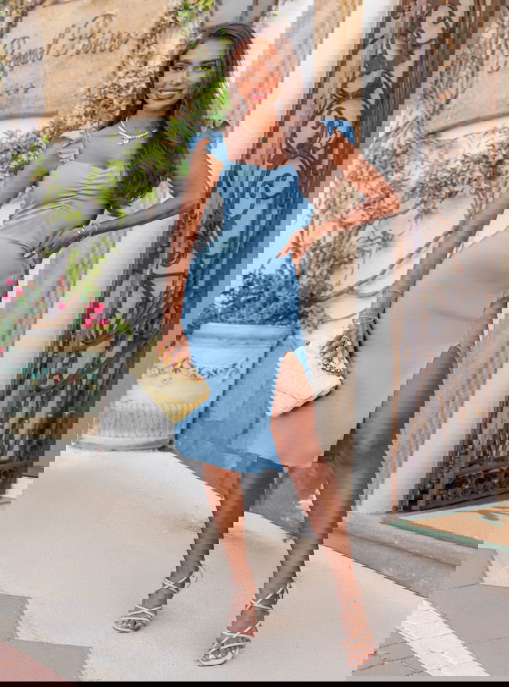 Błękitna sukienka z rozcięciem Nunzia to modowy pewniak w letniej garderobie. Kobieca, świeża i pełna uroku – idealna na wakacyjne dni i wyjątkowe wieczory. Jej dopracowany krój podkreśla sylwetkę, a jednocześnie pozostaje wygodny i swobodny. To model, który nie potrzebuje wielu dodatków, by wyglądać spektakularnie. W kolekcji Positano jest symbolem lekkości i klasy z nutą śródziemnomorskiej beztroski.