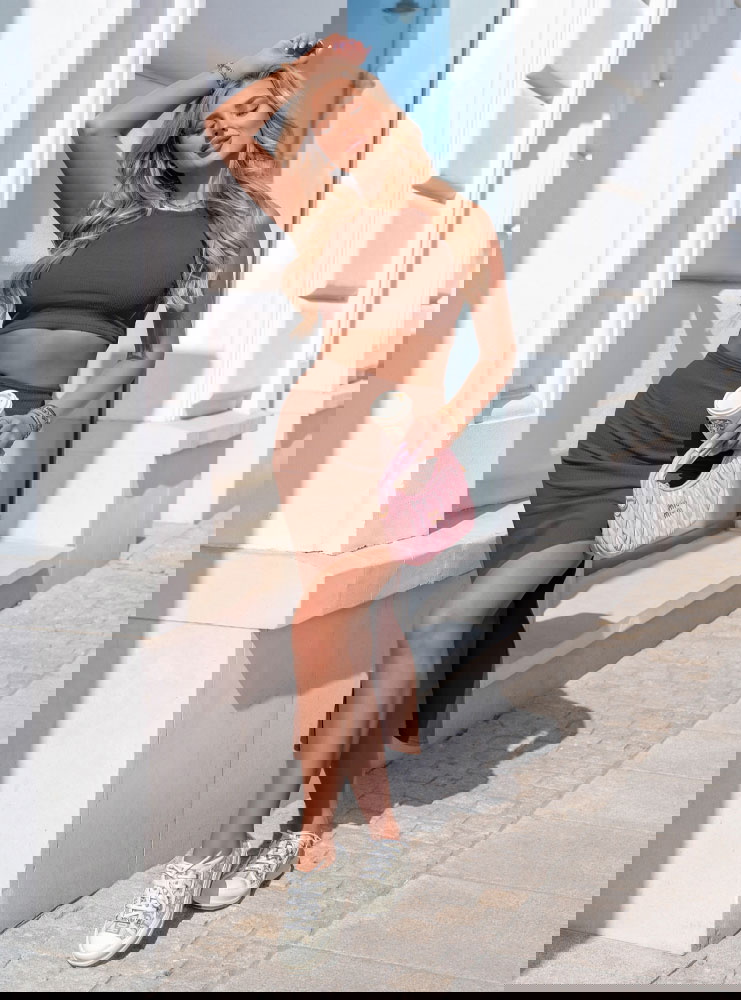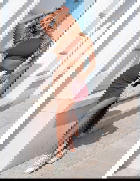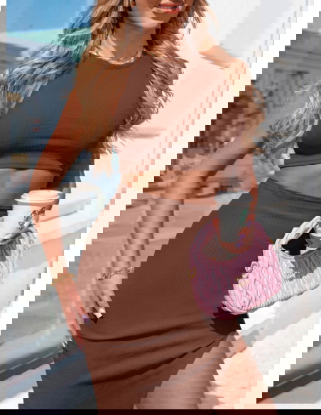 Prążkowany komplet top+spódnica z rozcięciem Jalise - mocha mousse to idealne połączenie stylu, wygody i kobiecego charakteru. Uniwersalny fason, przyjemny materiał i efektowne rozcięcie sprawiają, że ten model podbije Twoją letnią garderobę. Noś razem lub osobno – twórz różnorodne stylizacje i ciesz się modą na swoich zasadach.