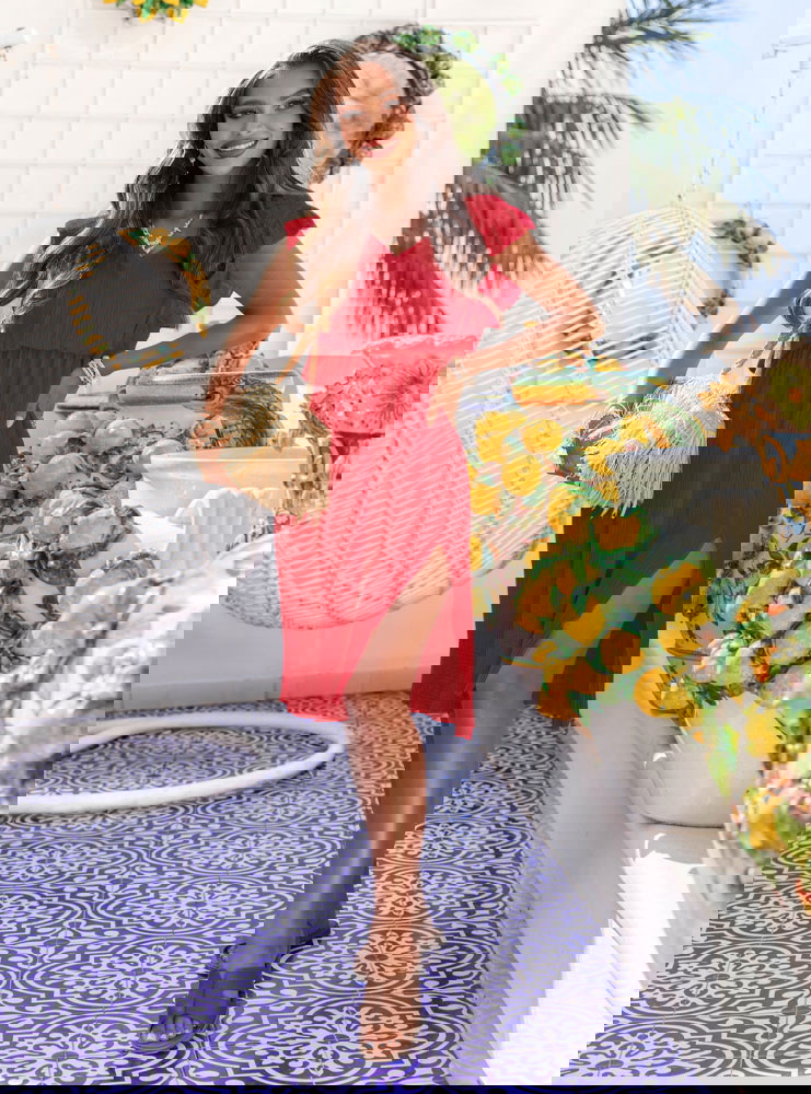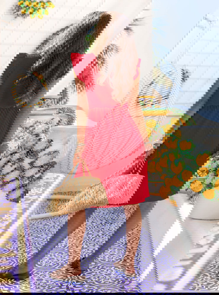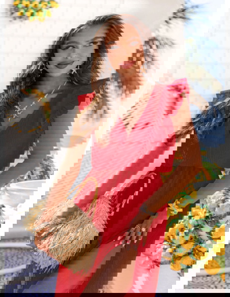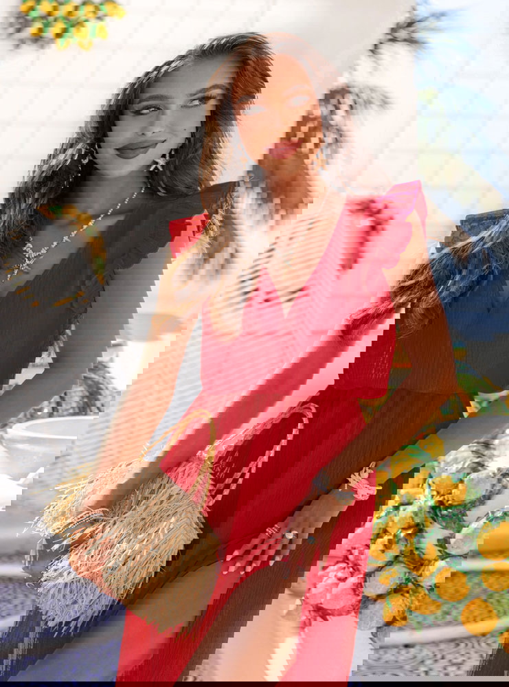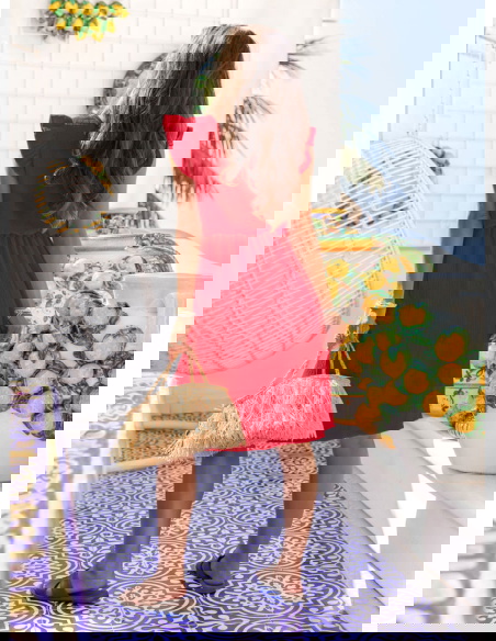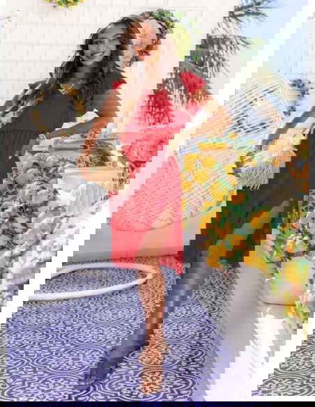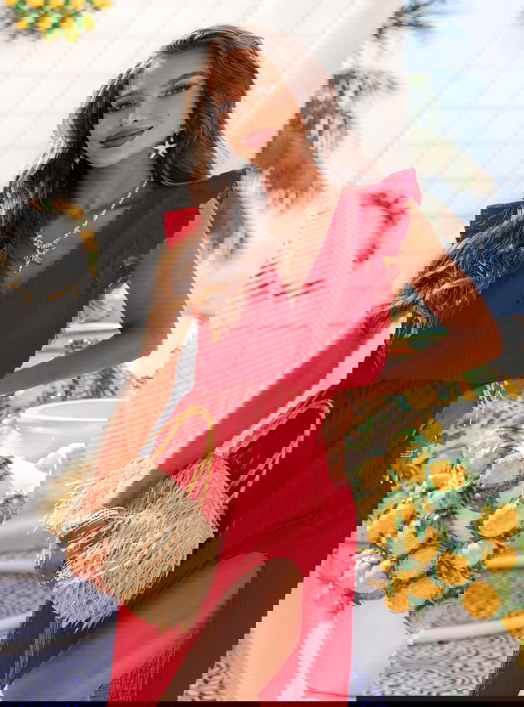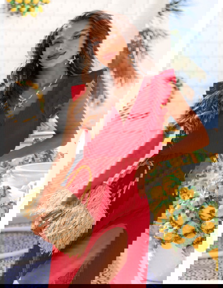 Malinowa muślinowa sukienka midi Boromea to doskonały wybór na słoneczne dni i letnie spacery. Lekka, zwiewna i kobieca – emanuje naturalnym urokiem i wakacyjnym luzem. Jej intensywny kolor przyciąga wzrok i pięknie podkreśla opaleniznę. Uszyta z delikatnego muślinu, pozwala skórze oddychać nawet w największy upał. Fason z krótkim rękawkiem, dekoltem w kształcie litery V oraz subtelnym rozcięciem na nodze nadaje sylwetce lekkości i wdzięku. Gumka w pasie delikatnie podkreśla talię, jednocześnie nie opinając ciała. Długość midi sprawia, że model jest bardzo uniwersalny – idealny zarówno na co dzień, jak i na wieczorne kolacje przy zachodzie słońca. Możesz ją wystylizować zarówno z klapkami i koszykiem, jak i z eleganckimi sandałkami. To sukienka, w której poczujesz się komfortowo, kobieco i stylowo. Model świetnie oddaje klimat kolekcji Positano – beztroski, włoski szyk i swoboda.