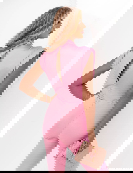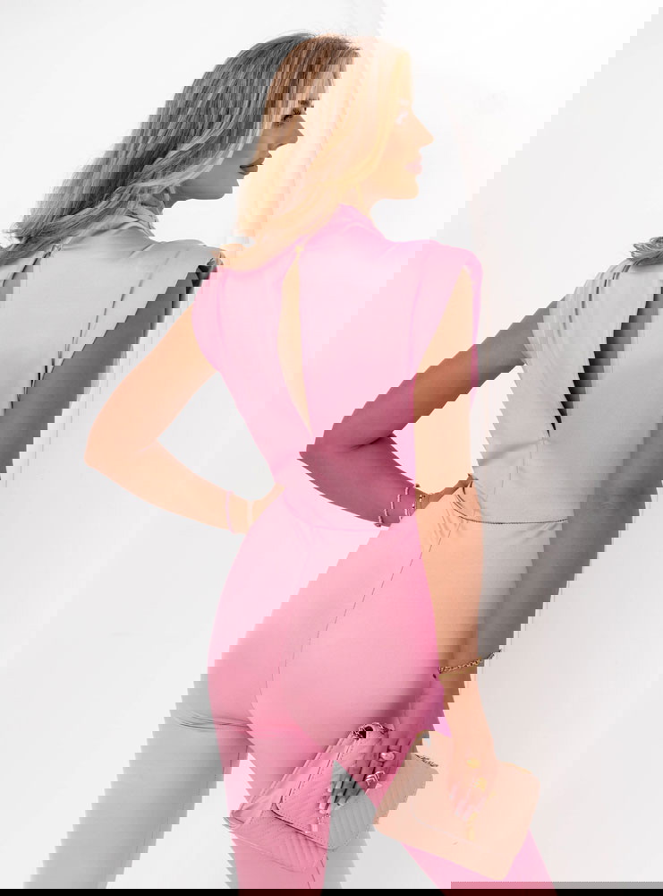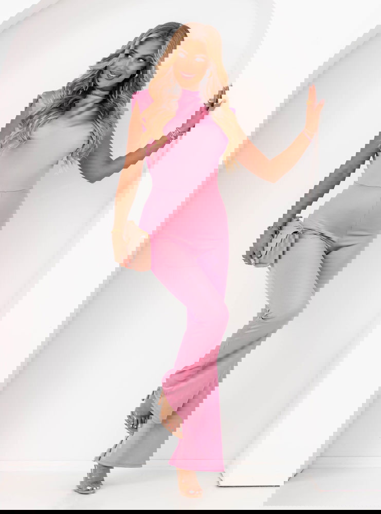 Pudrowy dopasowany kombinezon Kimbery to propozycja dla kobiet, które chcą wyglądać wyjątkowo bez zbędnego wysiłku. To ubranie, które mówi „mam styl” zanim zdążysz coś powiedzieć. Jego kobiecy krój pięknie podkreśla sylwetkę, a delikatny róż dodaje uroku i świeżości. To opcja, która sprawdzi się zawsze wtedy, gdy chcesz się wyróżnić – ale w sposób subtelny i wyważony. Góra z lekką stójką i szerokimi ramionami przyciąga uwagę i dodaje elegancji. Dopasowane nogawki z lekkim rozszerzeniem na dole wydłużają optycznie nogi i dodają całości charakteru. Całość jest bardzo efektowna, ale jednocześnie niezwykle wygodna. To ubranie, które łączy w sobie komfort noszenia i wyrazisty look. Założysz je raz – i nie będziesz chciała się z nim rozstać. Pudrowy kolor pięknie współgra z opaloną skórą i letnimi dodatkami.