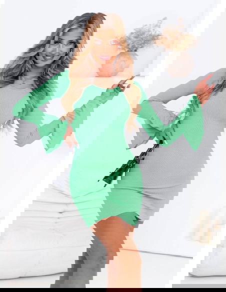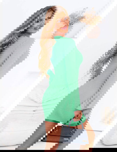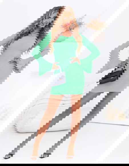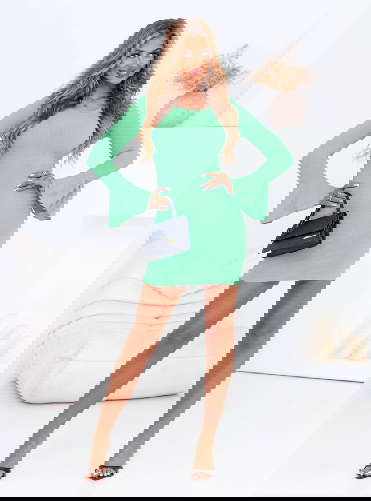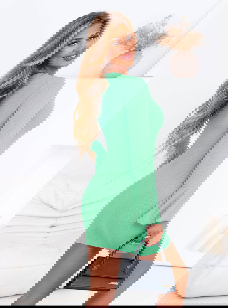 Miętowa sukienka mini z długim rękawem Azela