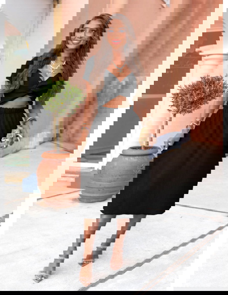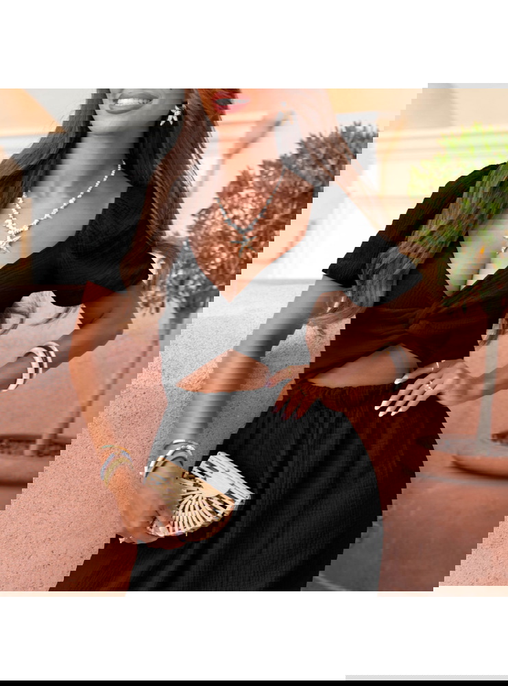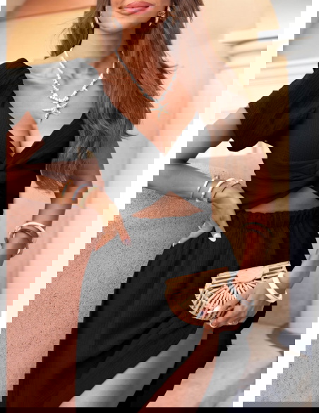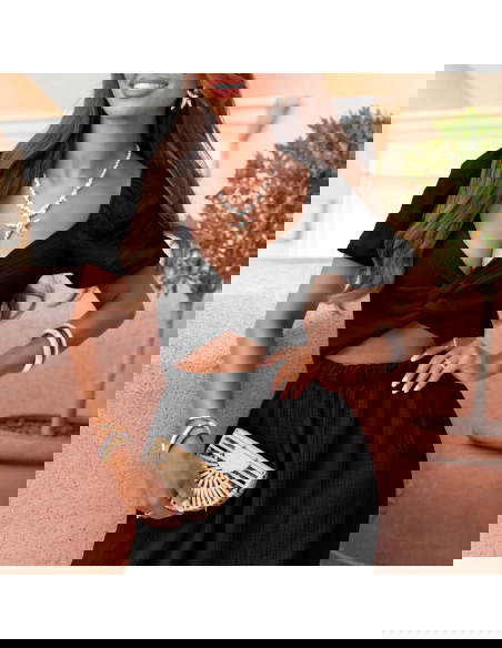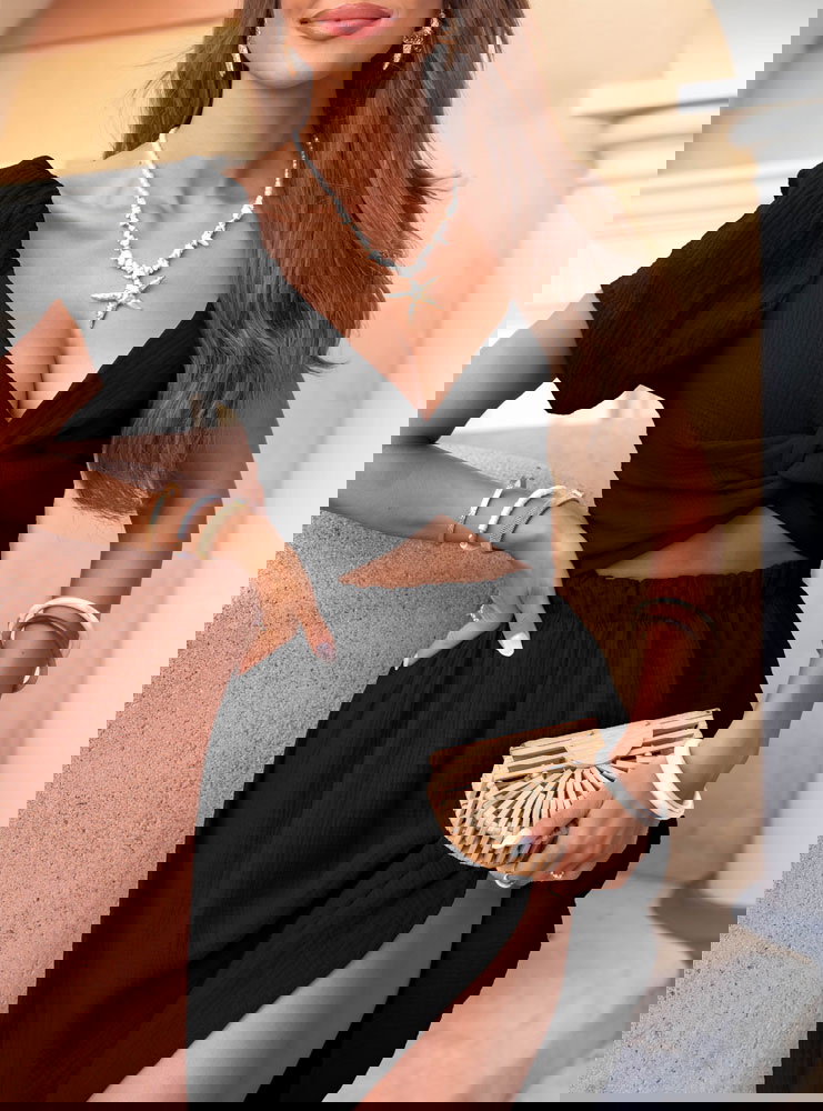 Czarna muślinowa sukienka midi z wycięciem na brzuchu Merina to propozycja, która przyciąga wzrok i nie pozostaje niezauważona. Jej ponadczasowy kolor w połączeniu z nowoczesnym fasonem tworzy stylową całość. To sukienka, która łączy elegancję z wakacyjnym luzem. Krój z krótkim rękawem i efektownym skręceniem z przodu pięknie eksponuje sylwetkę. Wycięcie w talii dodaje lekkości i subtelnej zmysłowości, a elastyczny pas zapewnia wygodę noszenia. Midi długość daje balans między kobiecym wdziękiem a codzienną swobodą. Ta sukienka idealnie wpisuje się w klimat włoskiego wybrzeża i miejskich spacerów. Niezależnie od tego, czy zestawisz ją z płaskimi sandałami, czy delikatnymi szpilkami – zawsze wygląda dobrze. To model, który daje poczucie pewności siebie i elegancji, nie tracąc przy tym wakacyjnego charakteru. Kolekcja Positano udowadnia, że wygoda może iść w parze ze stylem – i ta sukienka jest tego najlepszym dowodem.